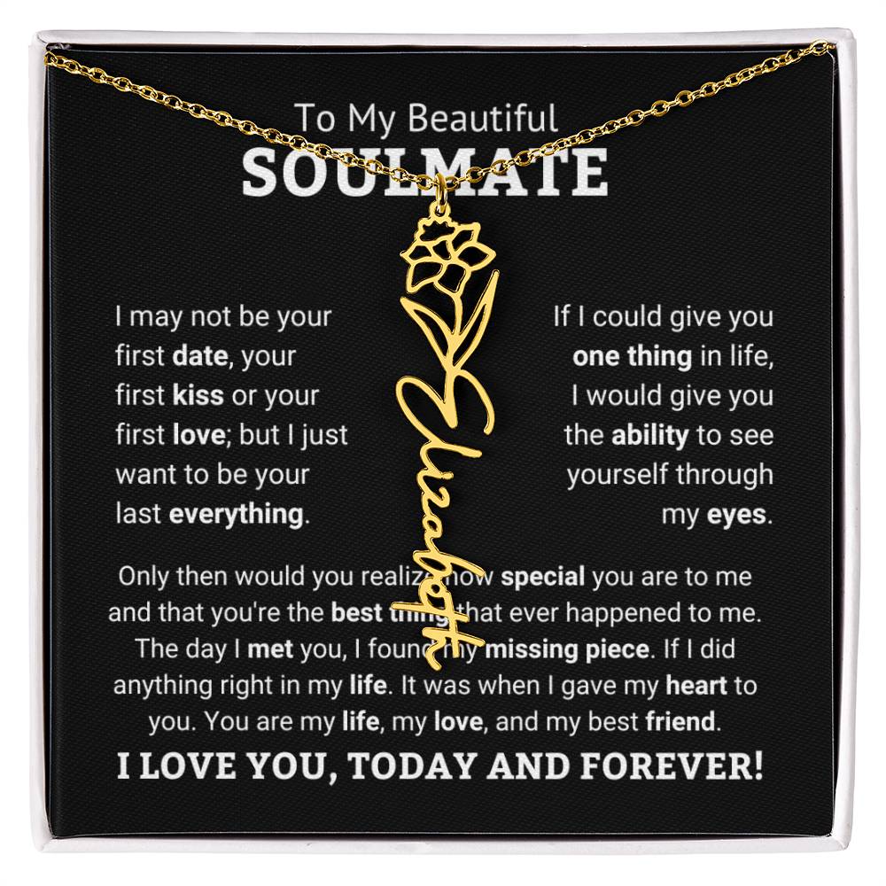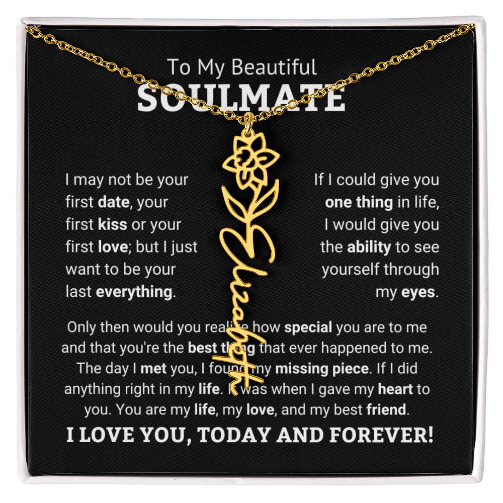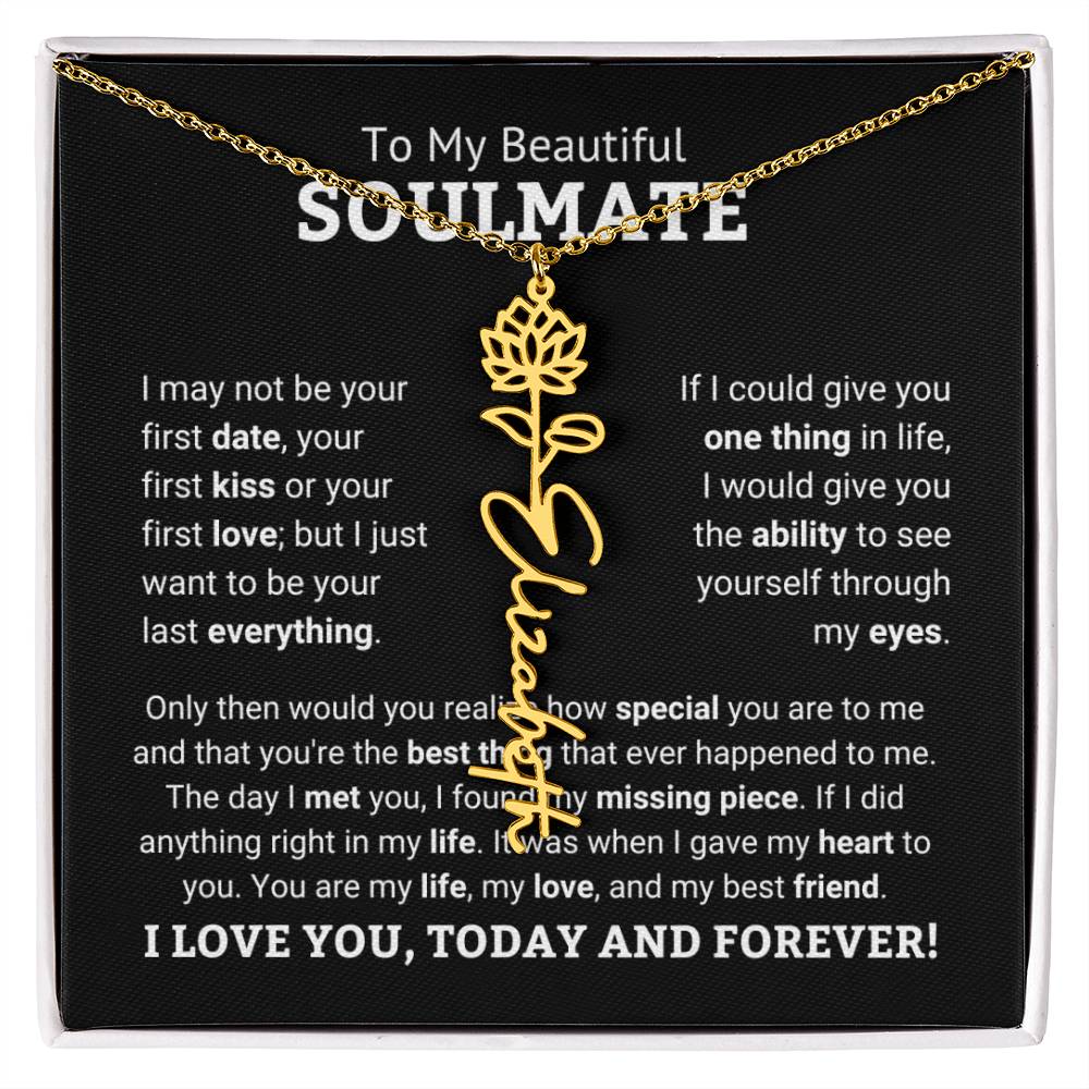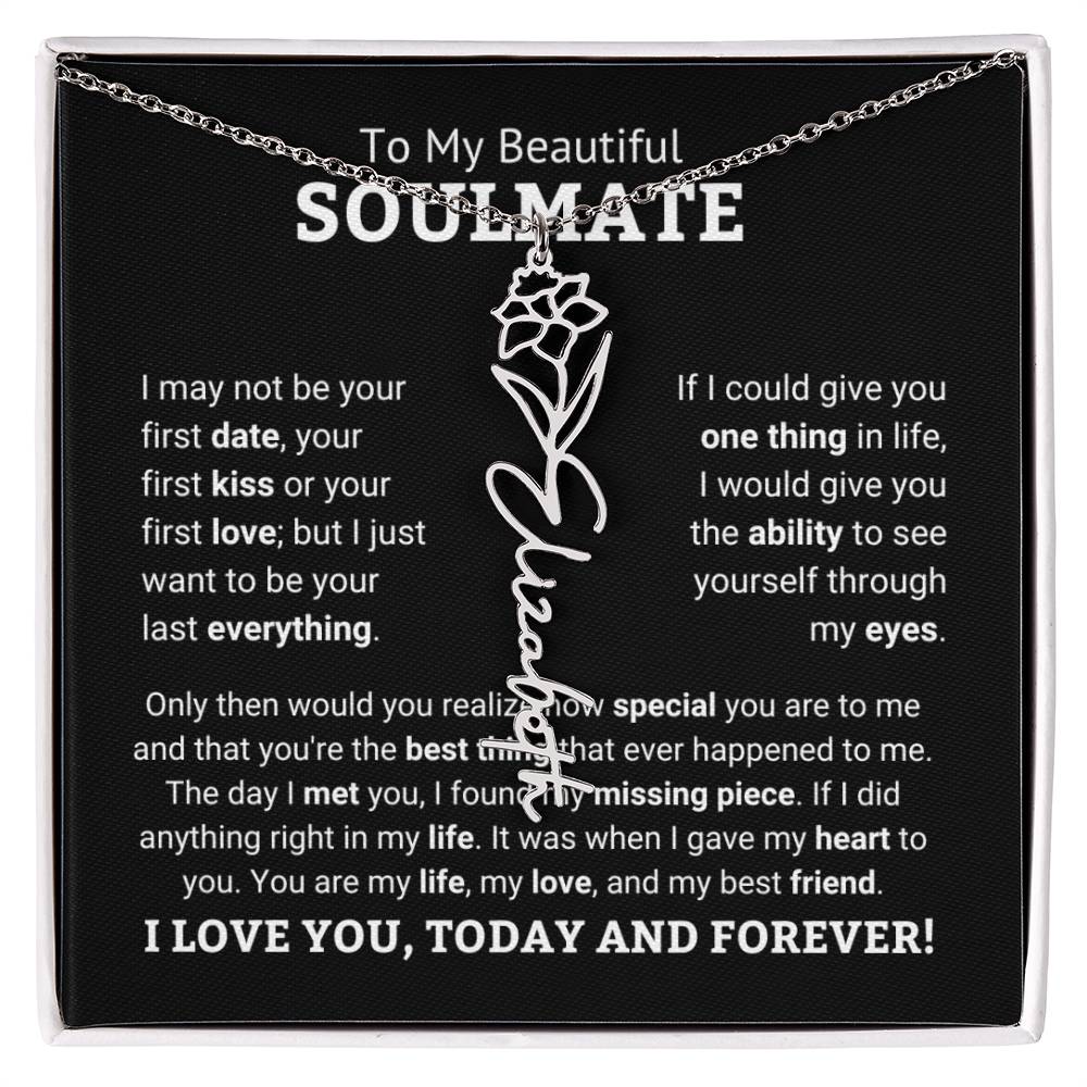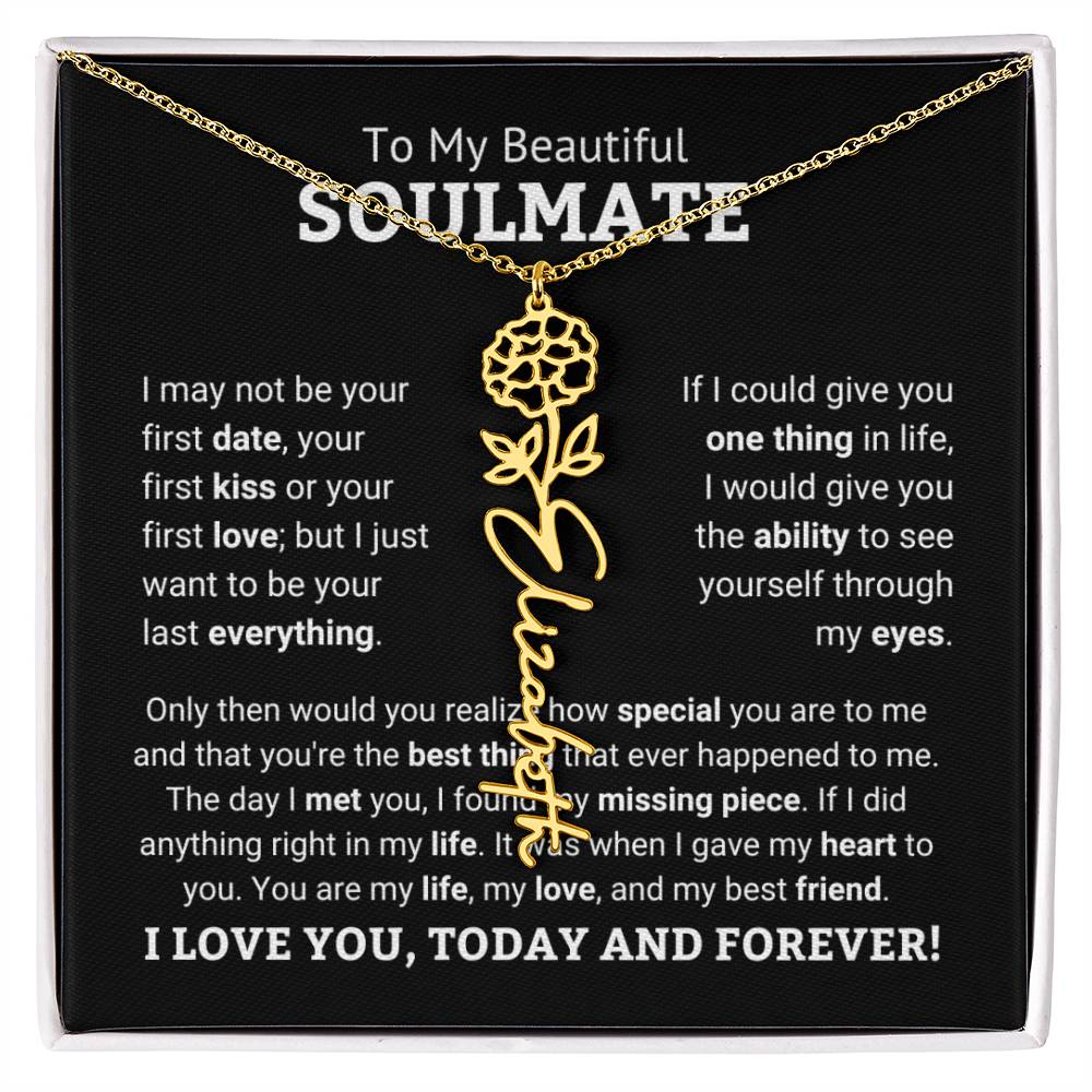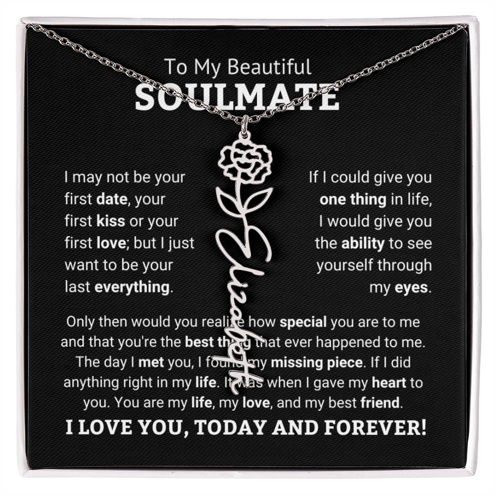 Need a gift that's as unique as she is? Then look no further than our Flower Name Necklace! With a customizable birth flower design, this necklace is a meaningful addition to any jewelry collection. Whether you're dressing up for a special occasion or simply want to add some flair to your everyday look, this necklace is perfect for your special someone. Handcrafted from high-quality materials, it is both stylish and durable. So why wait? Personalize your own floral name necklace today!