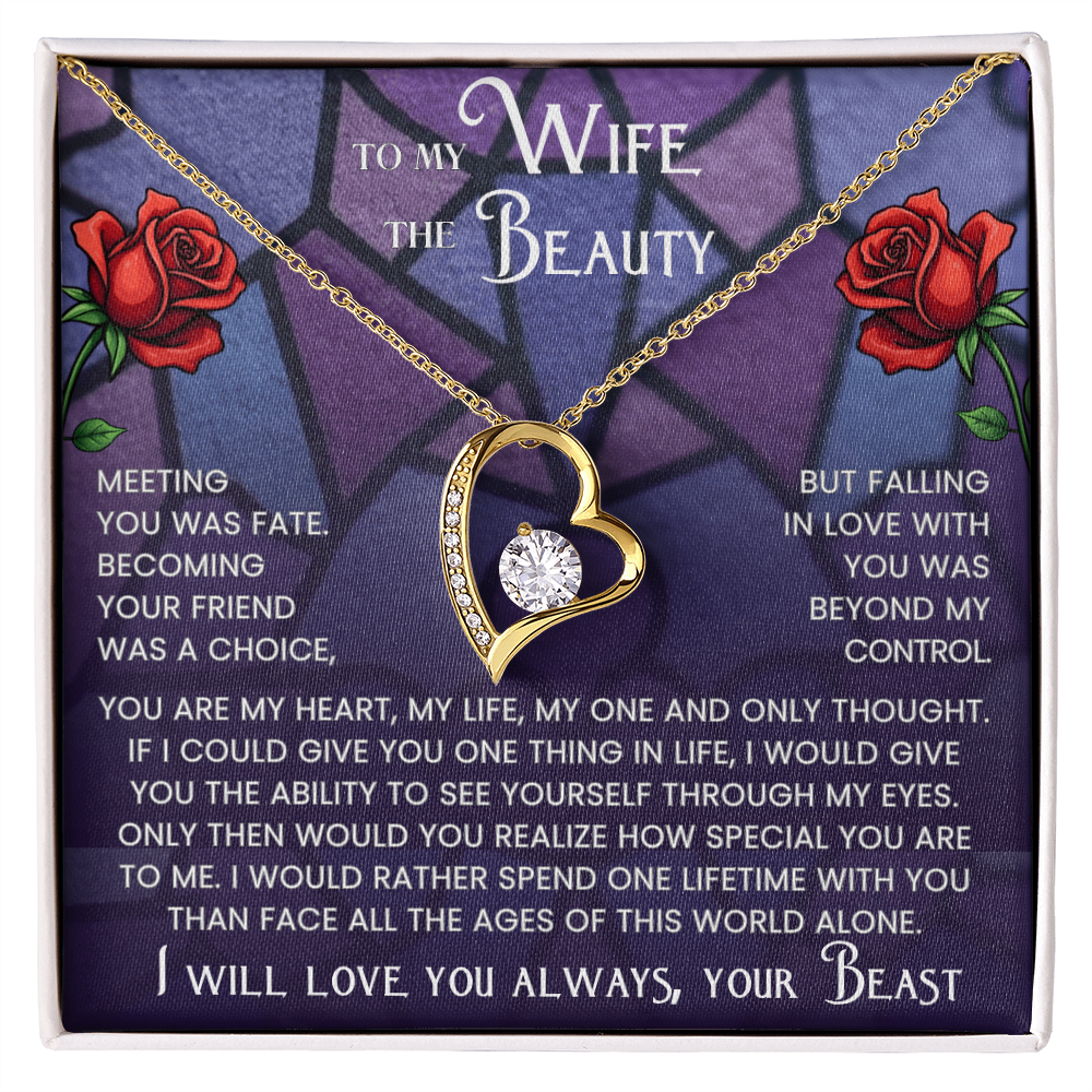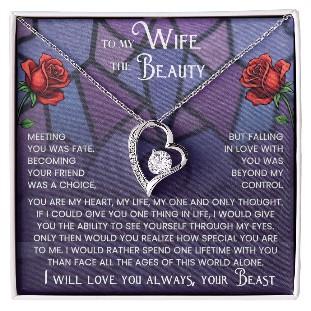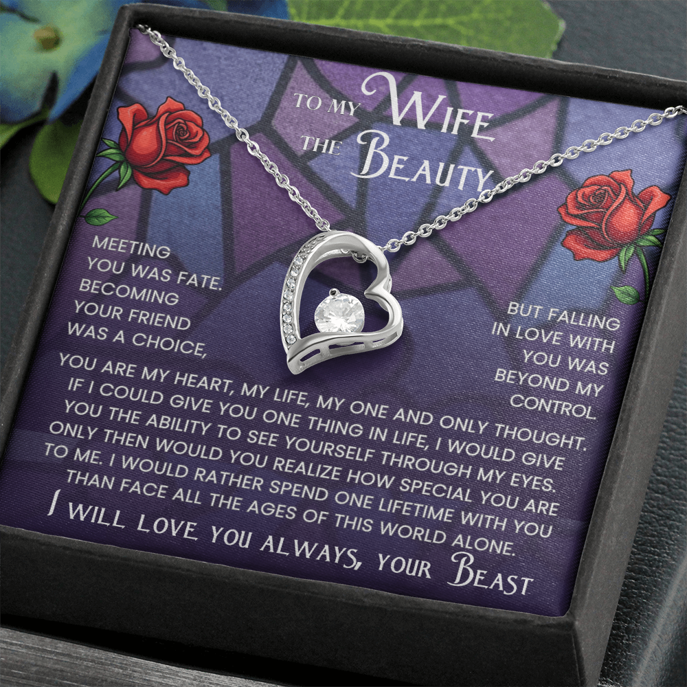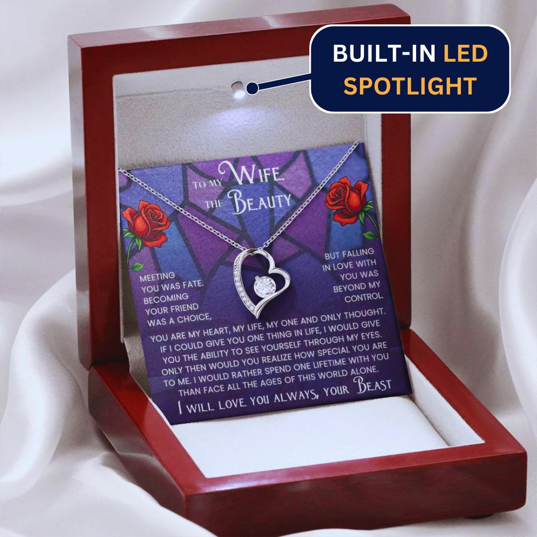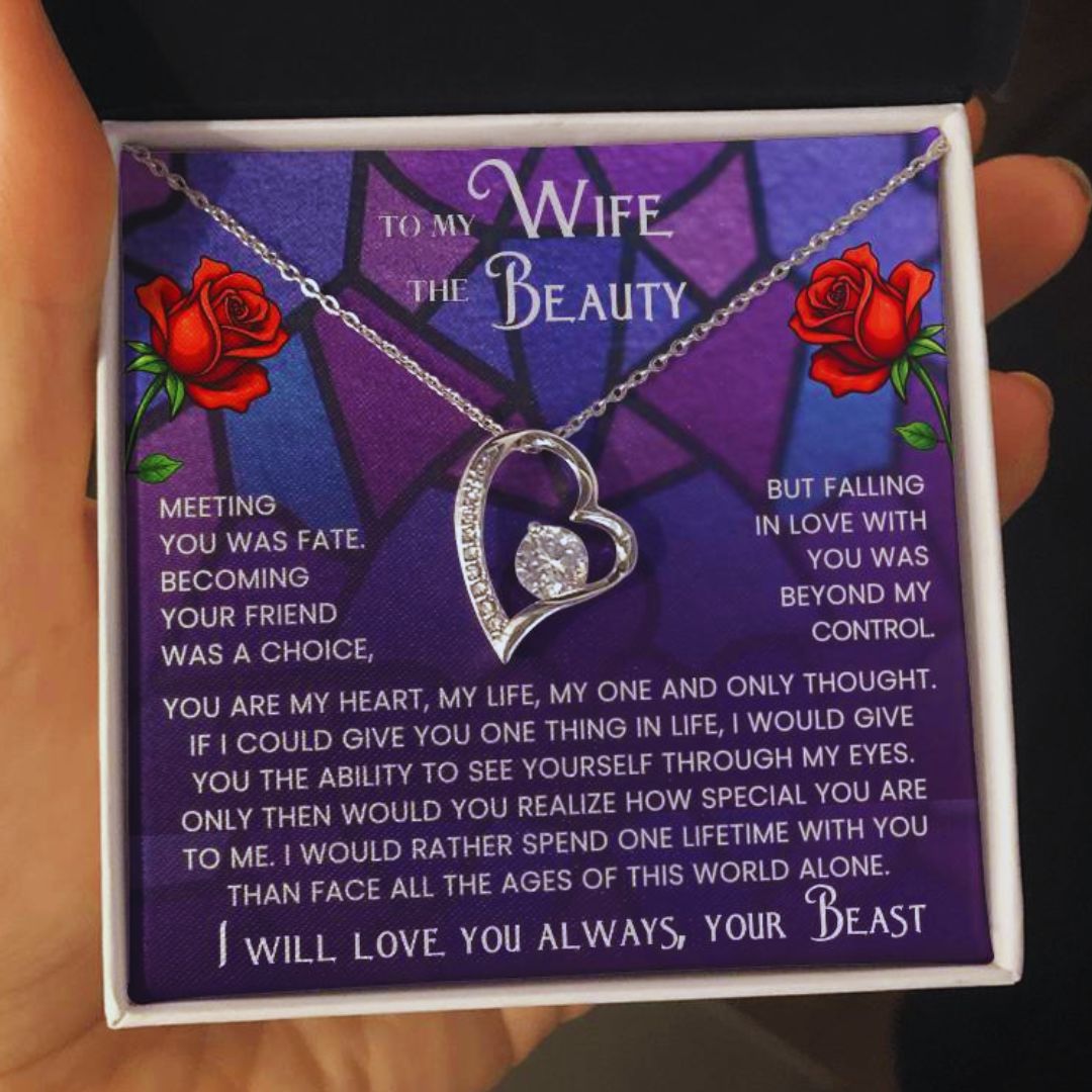 Give your Beauty a gift that captures the magic of your love story. Inspired by the timeless tale of Beauty and the Beast, this Forever Love Necklace is more than just jewelry, it's a heartfelt reminder of your devotion.