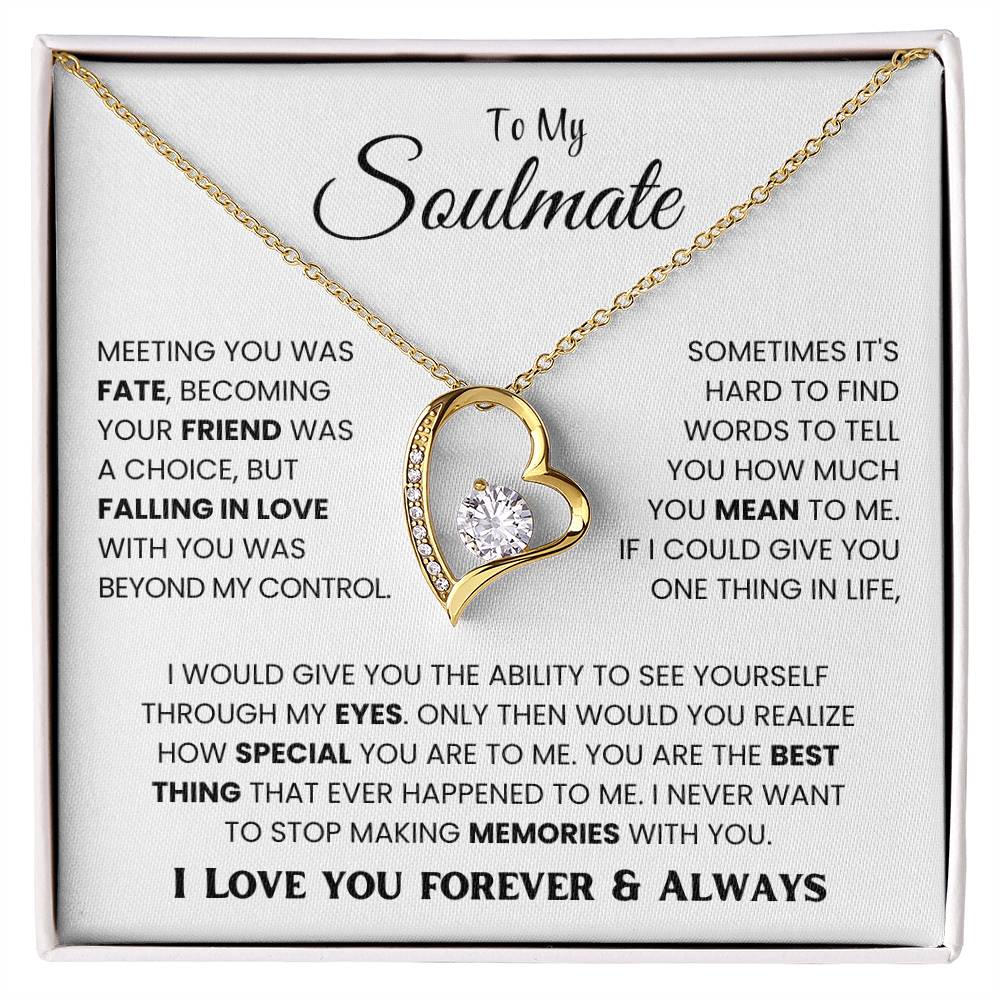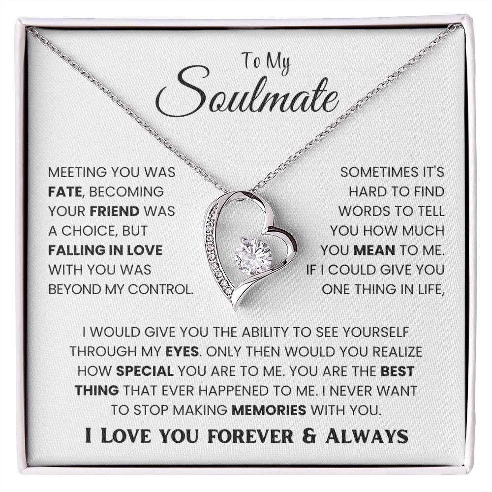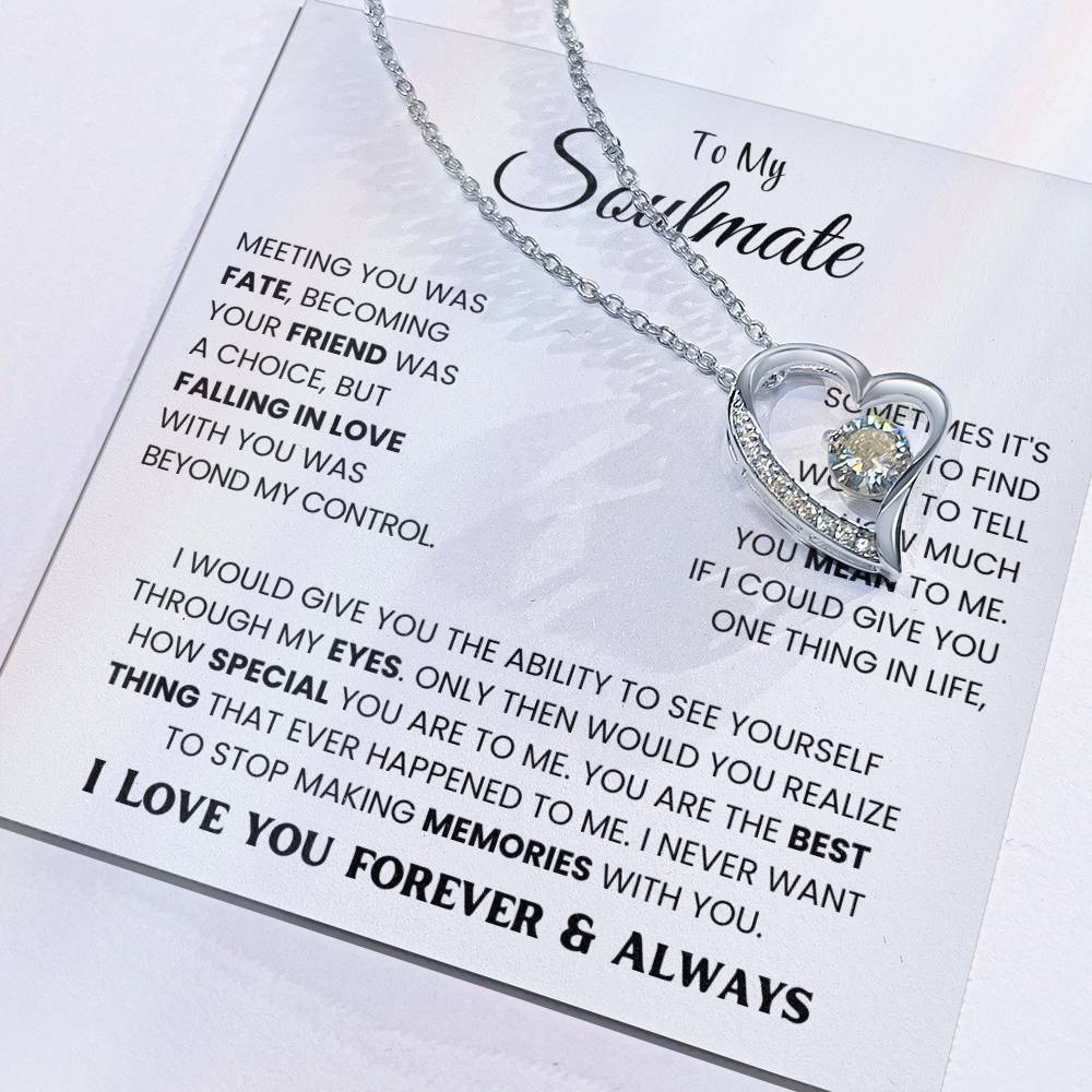 The dazzling Forever Love Necklace is sure to make her heart melt! This necklace features a stunning 6.5mm CZ crystal surrounded by a polished heart pendant embellished with smaller crystals to add extra sparkle and shine. Beautifully crafted with either a white gold or yellow gold finish, be sure to give her a classic gift she can enjoy everyday.
