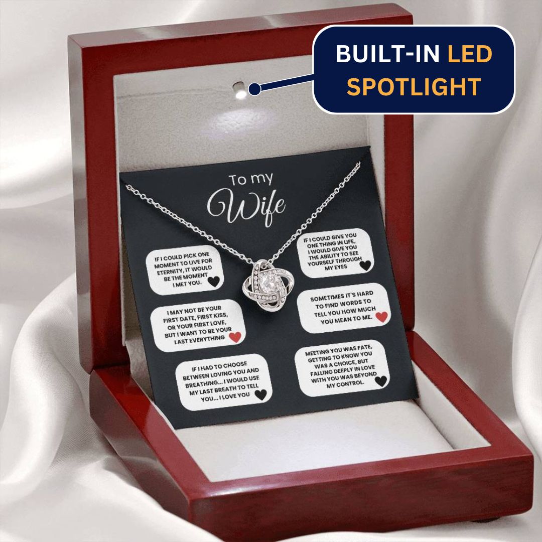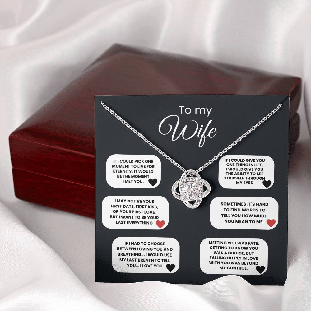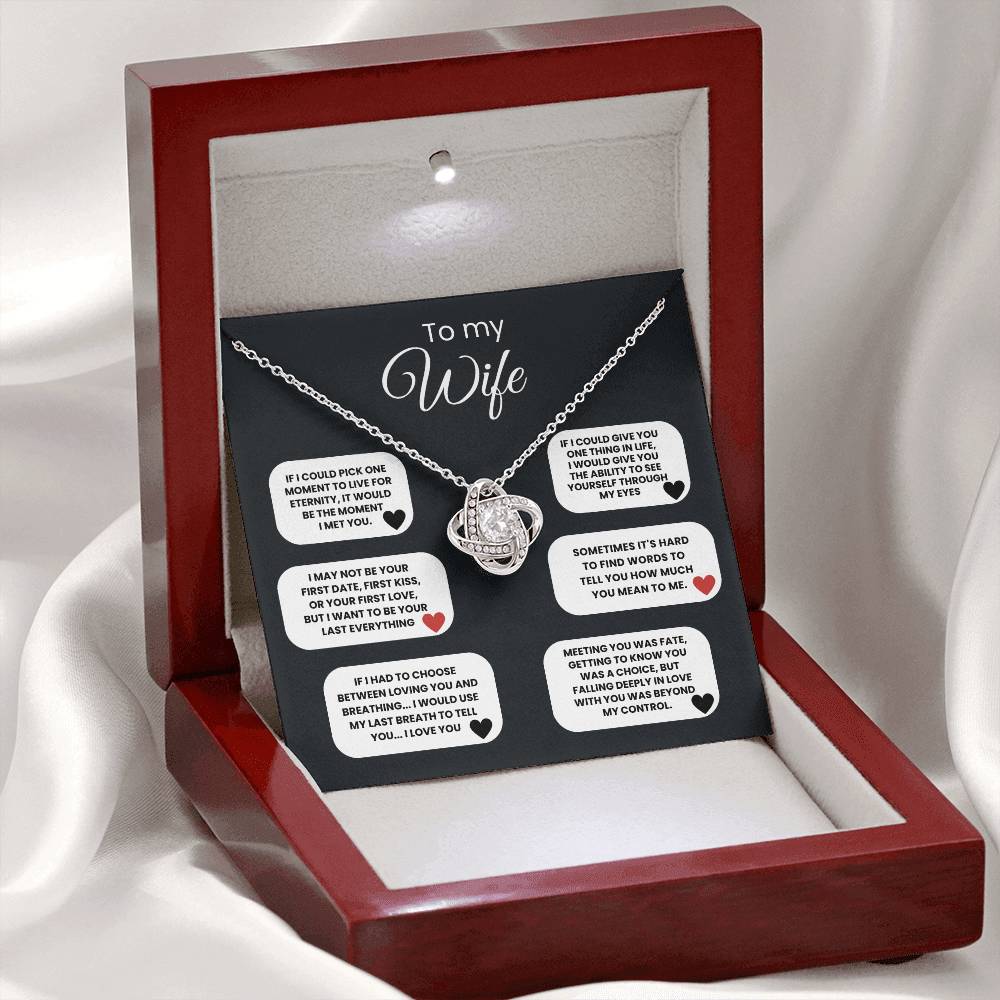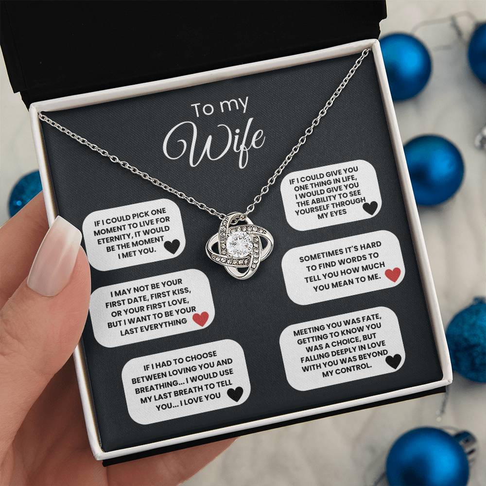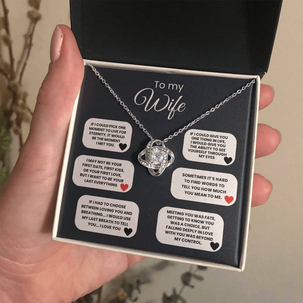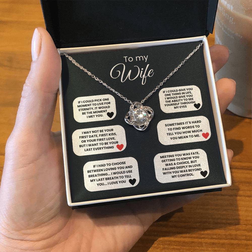 TO MY WIFE, IF I COULD PICK ONE MOMENT TO LIVE FOR ETERNITY, IT WOULD BE THE MOMENT I MET YOU. IF I COULD GIVE YOU ONE THING IN LIFE, I WOULD GIVE YOU THE ABILITY TO SEE YOURSELF THROUGH MY EYES. I MAY NOT BE YOUR FIRST DATE, FIRST KISS, OR YOUR FIRST LOVE, BUT I WANT TO BE YOUR LAST EVERYTHING. SOMETIMES IT'S HARD TO FIND WORDS TO TELL YOU HOW MUCH YOU MEAN TO ME. IF I HAD TO CHOOSE BETWEEN LOVING YOU AND BREATHING... I WOULD USE MY LAST BREATH TO TELL YOU... I LOVE YOU. MEETING YOU WAS FATE, GETTING TO KNOW YOU WAS A CHOICE, BUT FALLING DEEPLY IN LOVE WITH YOU WAS BEYOND MY CONTROL.