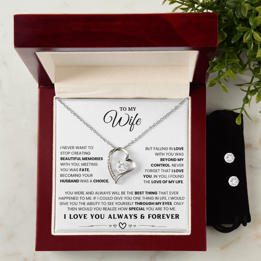 Give your loved one a gift that will make their heart swell! The Forever Love Necklace and Cubic Zirconia Earring Set is sure to do the trick.  This necklace and earring pairing provides dazzling sparkle when worn together or separately, and is perfect for any occasion! Do not miss out on this special offering!