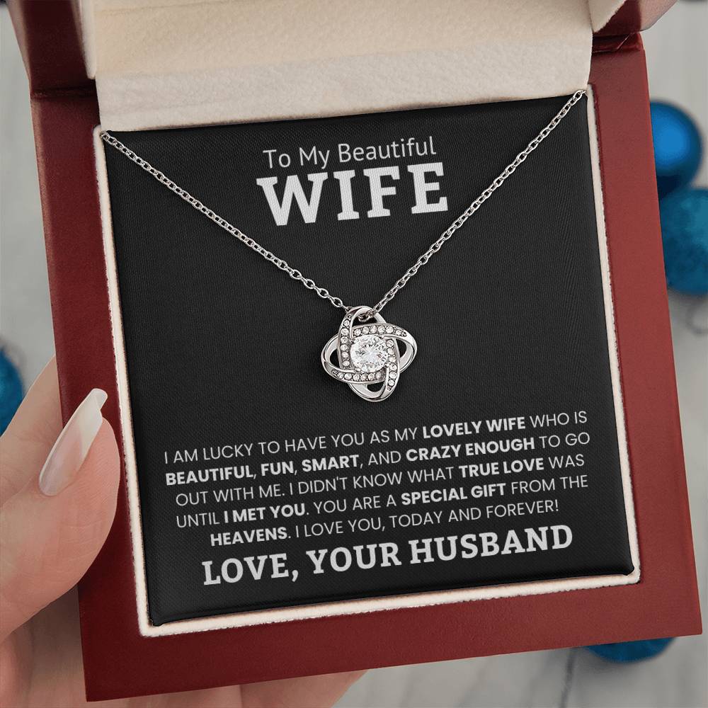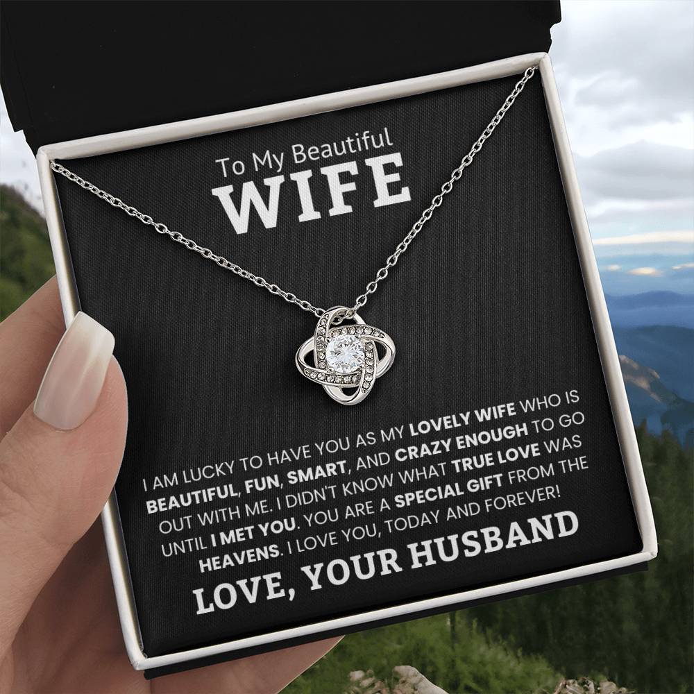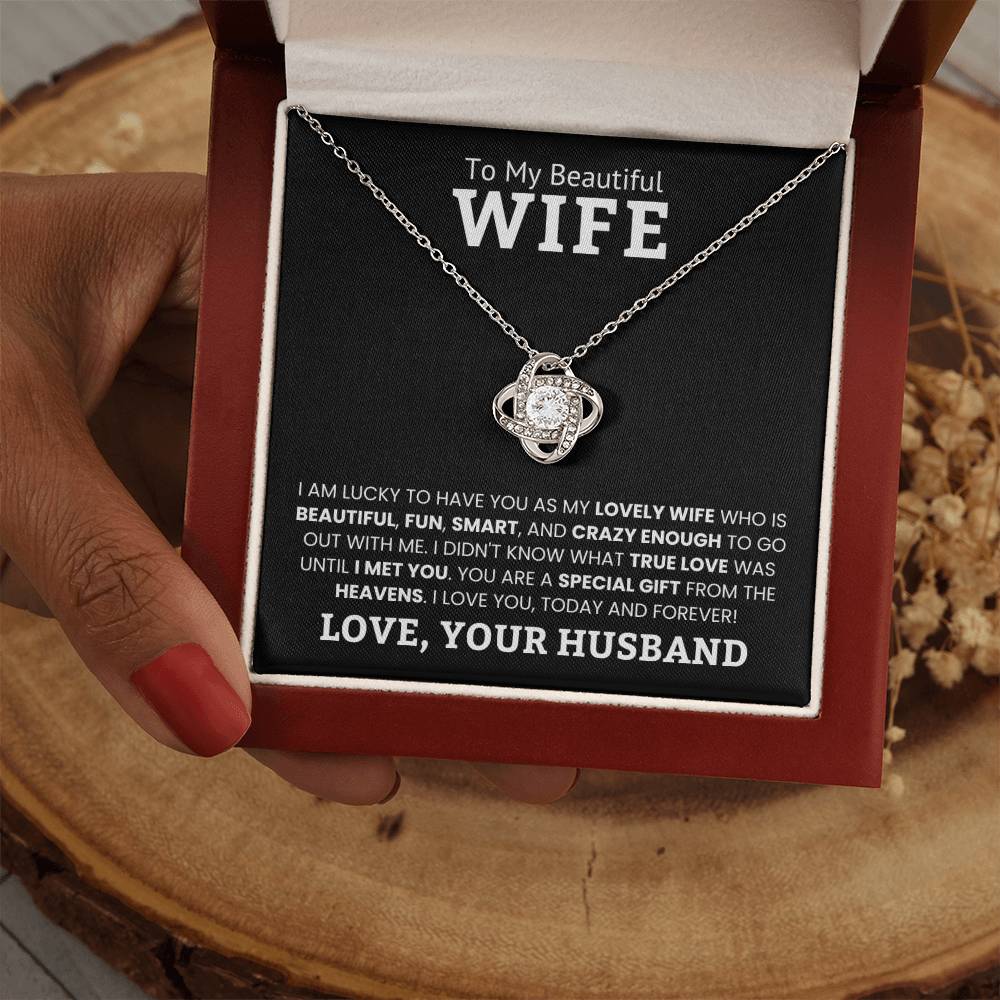 To My Wife, I am lucky to have you as my lovely wife who is beautiful, fun, smart, and crazy enough to go out with me. I didn't know what true love was until I met you. You are a special gift from the heavens. I love you, today and forever! LOVE YOUR HUSBAND