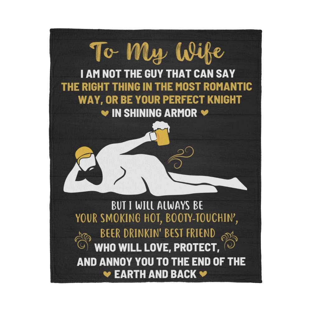 "TO MY WIFE, I AM NOT THE GUY THAT CAN SAY THE RIGHT THING IN THE MOST ROMANTIC WAY OR BE YOUR PERFECT KNIGHT IN SHINING ARMOR. BUT I WILL ALWAYS BE YOUR SMOKING HOT, BOOTY-TOUCHIN’, BEER DRINKIN' BEST FRIEND WHO WILL LOVE, PROTECT, AND ANNOY YOU TO THE END OF THE EARTH AND BACK"