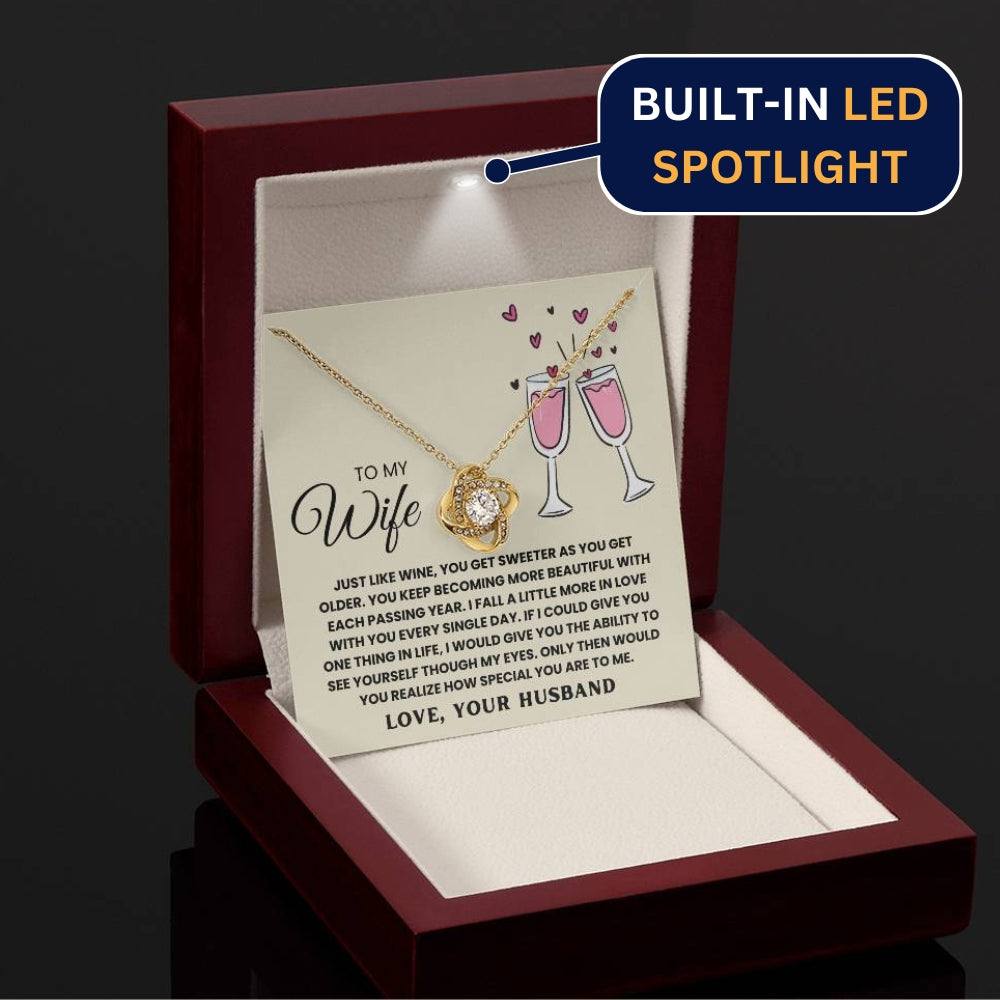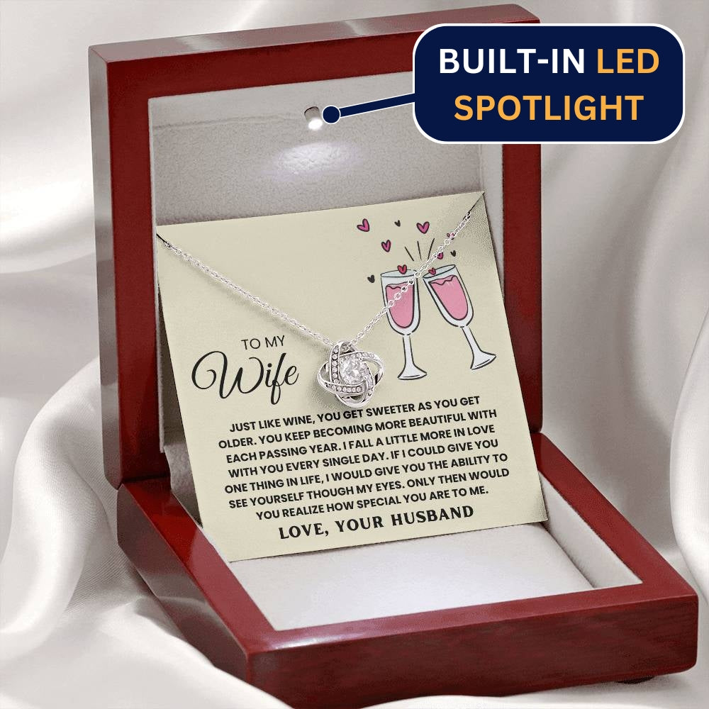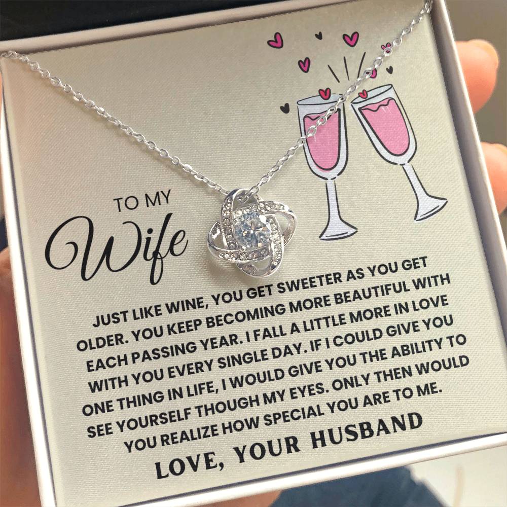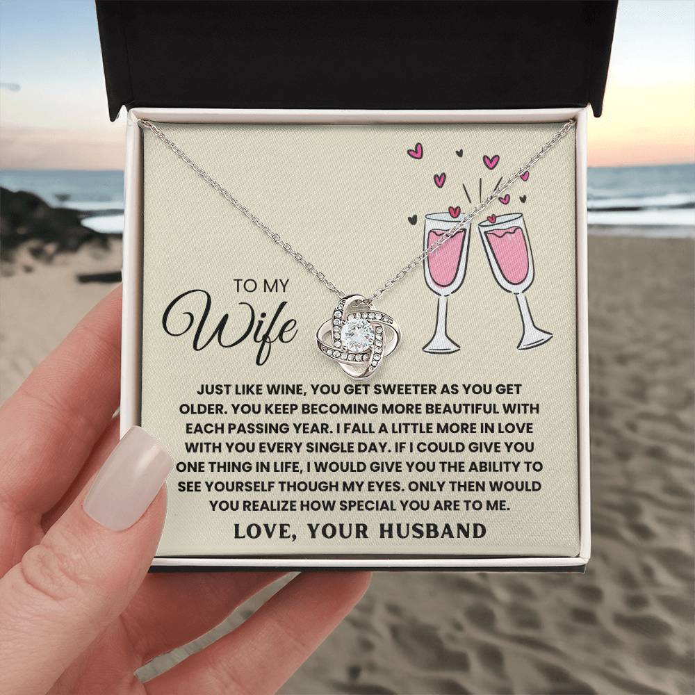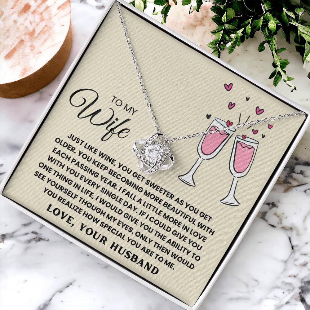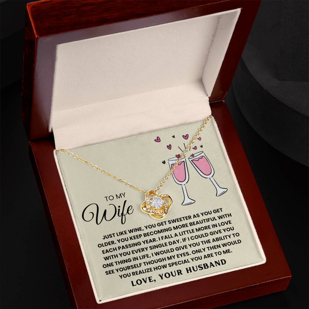 TO MY WIFE, JUST LIKE WINE, YOU GET SWEETER AS YOU GET OLDER. YOU KEEP  BECOMING MORE BEAUTIFUL WITH EACH PASSING YEAR. I FALL A LITTLE MORE IN LOVE WITH YOU EVERY SINGLE DAY. IF I COULD GIVE YOU ONE THING IN LIfe, I WOULD GIVE YOU THE ABILITY TO SEE YOURSELF THOUGH MY EYES. ONLY THEN WOULD YOU REALIZE HOW SPECIAL YOU ARE TO ME. LOVE, YOUR HUSBAND