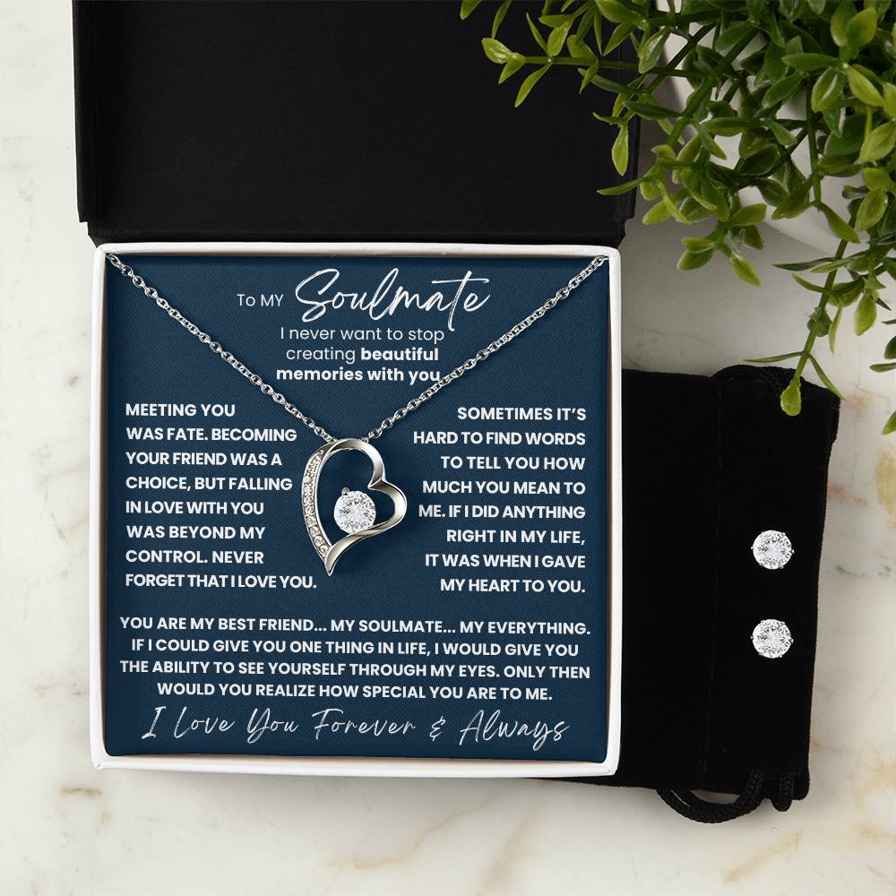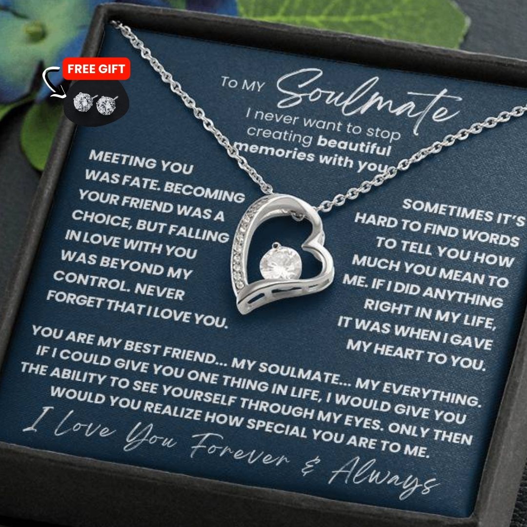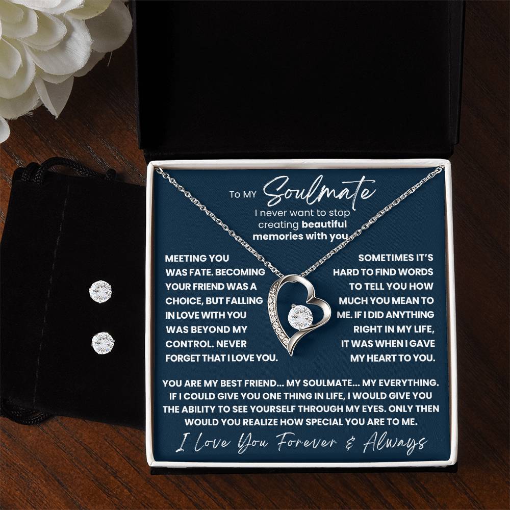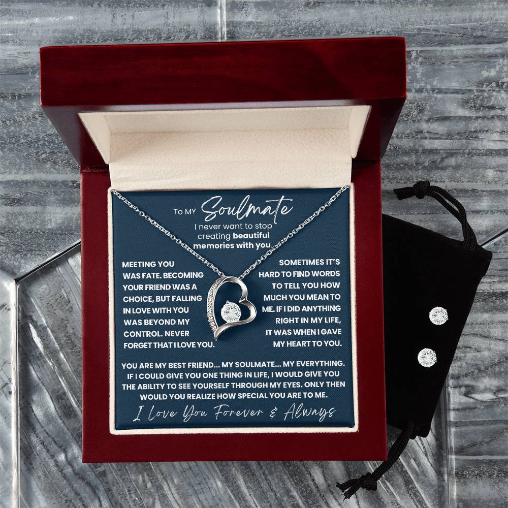 TO MY SOULMATE - YOU ARE MY BEST FRIEND... MY SOULMATE... MY EVERYTHING - (FOREVER LOVE NECKLACE + FREE MATCHING EARRINGS SET)