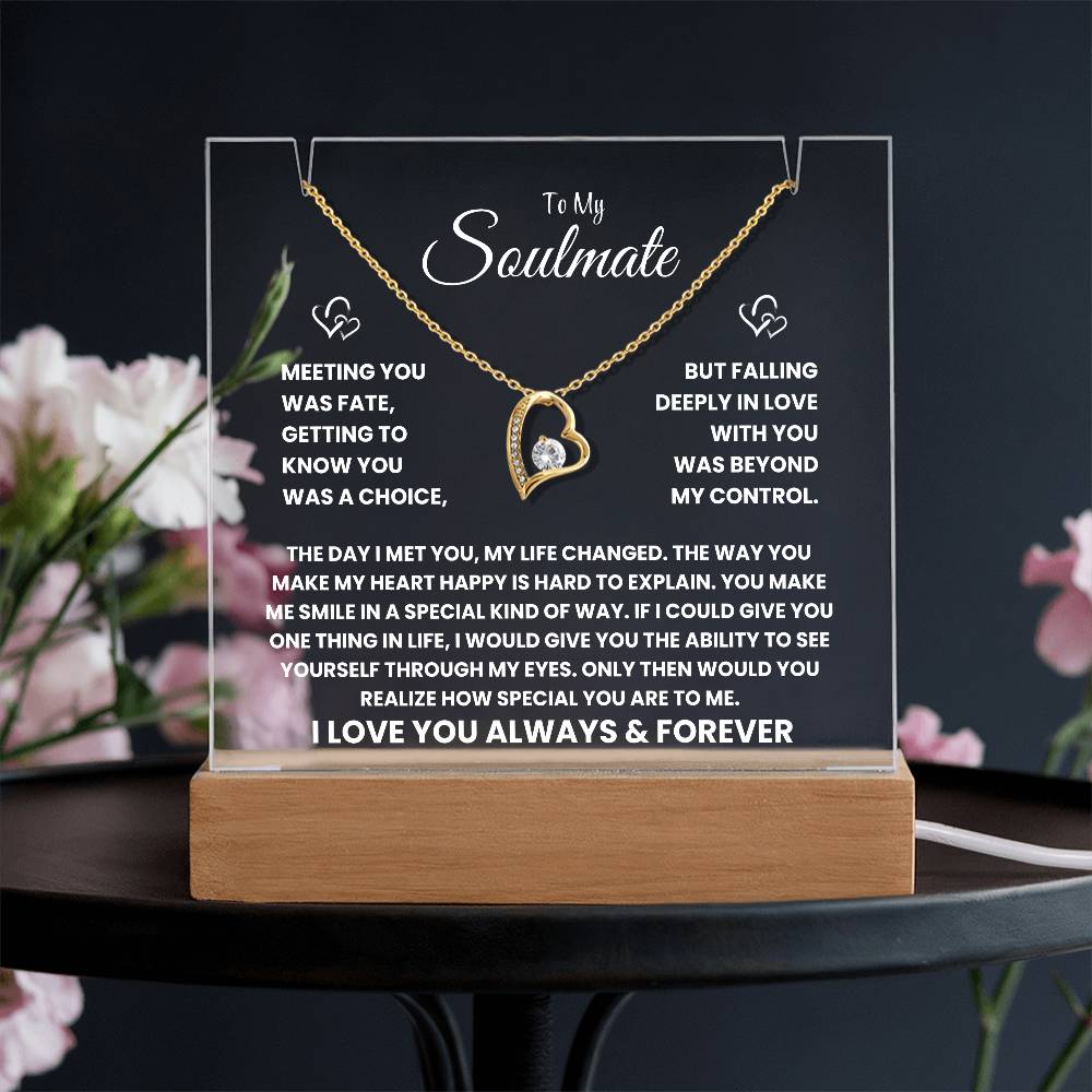Celebrate your love and appreciation with our elegant Keepsake Acrylic Bundle, featuring a stunning Square Acrylic and the beautiful Forever Love Necklace. Your personalized design is showcased on crystal-clear acrylic, making this set a striking focal point in any space. Paired with the charming Forever Love Necklace, this bundle is the perfect gift for anniversaries, birthdays, or any special occasion when you want to make a lasting impression.