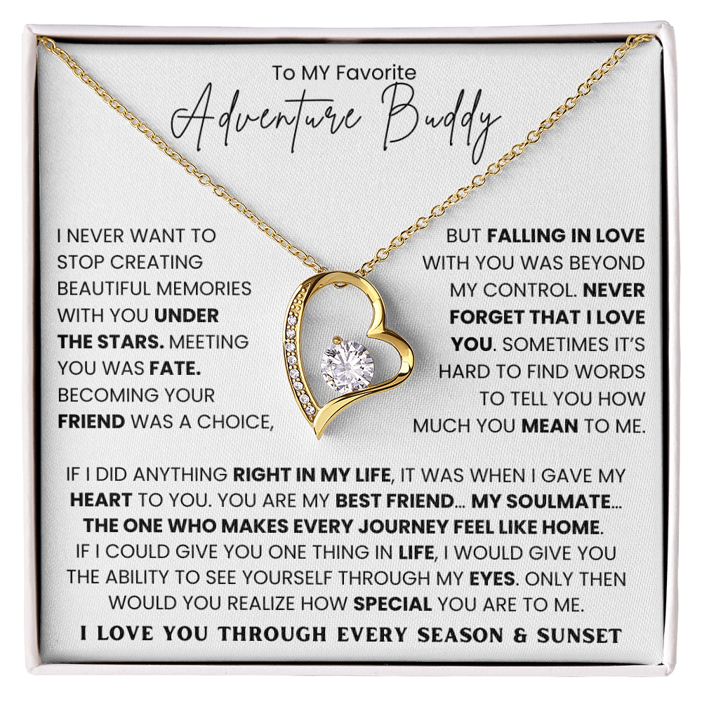 The dazzling Forever Love Necklace is sure to make her heart melt! This necklace features a stunning 6.5mm CZ crystal surrounded by a polished heart pendant embellished with smaller crystals to add extra sparkle and shine. Beautifully crafted with either a white gold or yellow gold finish, be sure to give her a classic gift she can enjoy everyday.