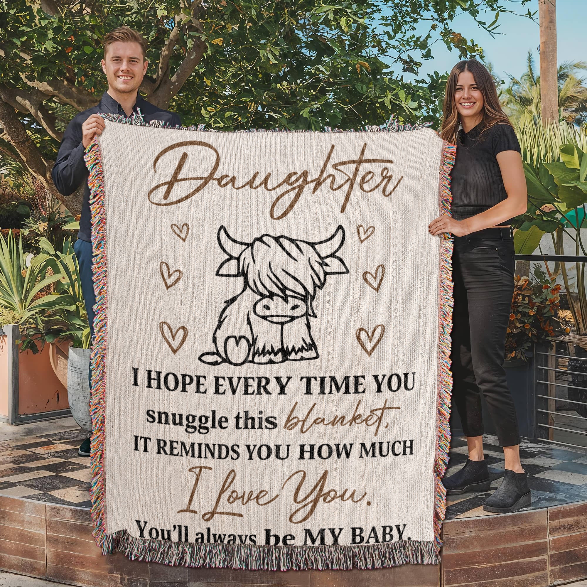 To My Daughter – Cute Cow Snuggle Blanket With "You’ll Always Be My Baby" Message