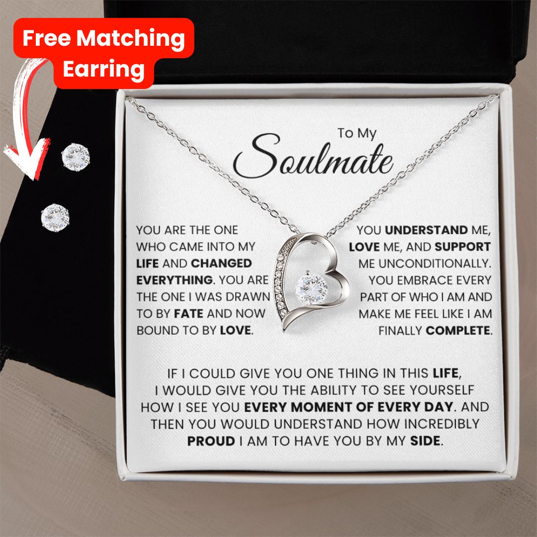 TO MY SOULMATE - YOU ARE MY BEST FRIEND... MY SOULMATE... MY EVERYTHING - (FOREVER LOVE NECKLACE + FREE MATCHING EARRINGS SET)