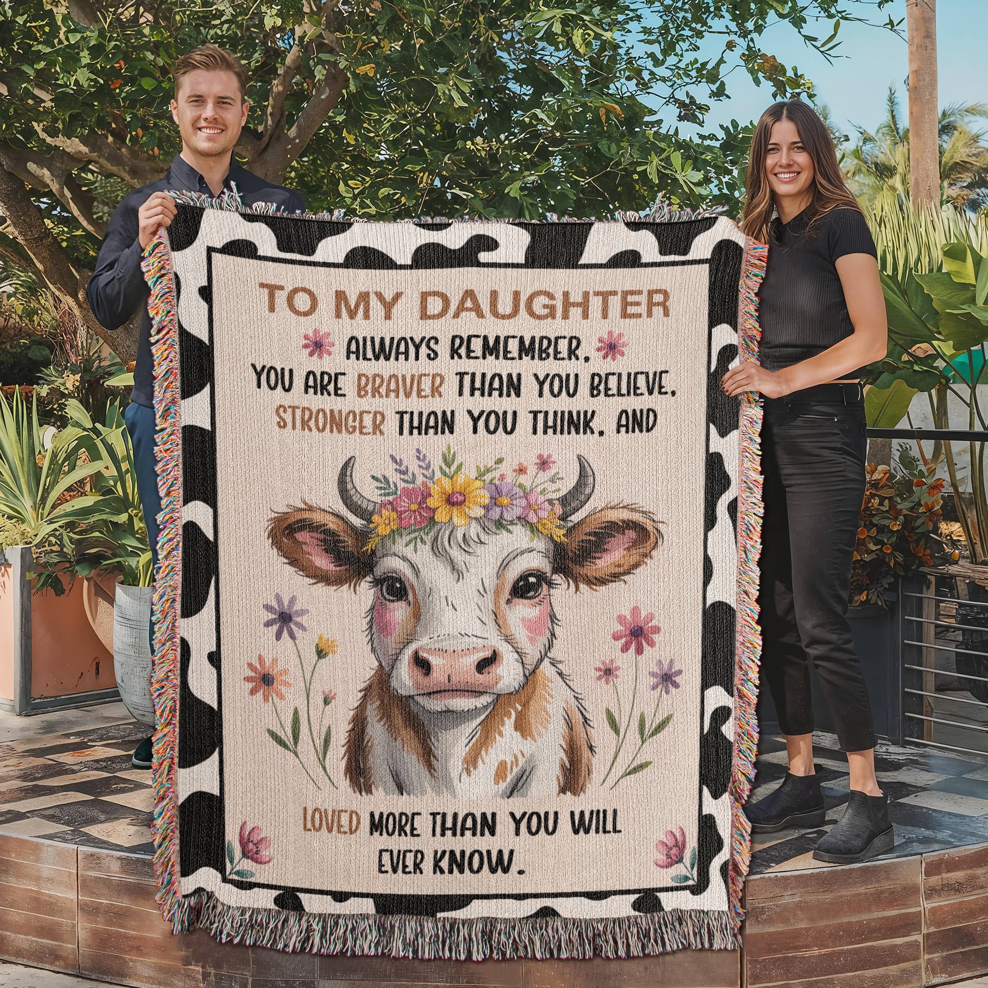 To My Daughter – “Braver, Stronger, More Loved Than You Know” Cow Blanket