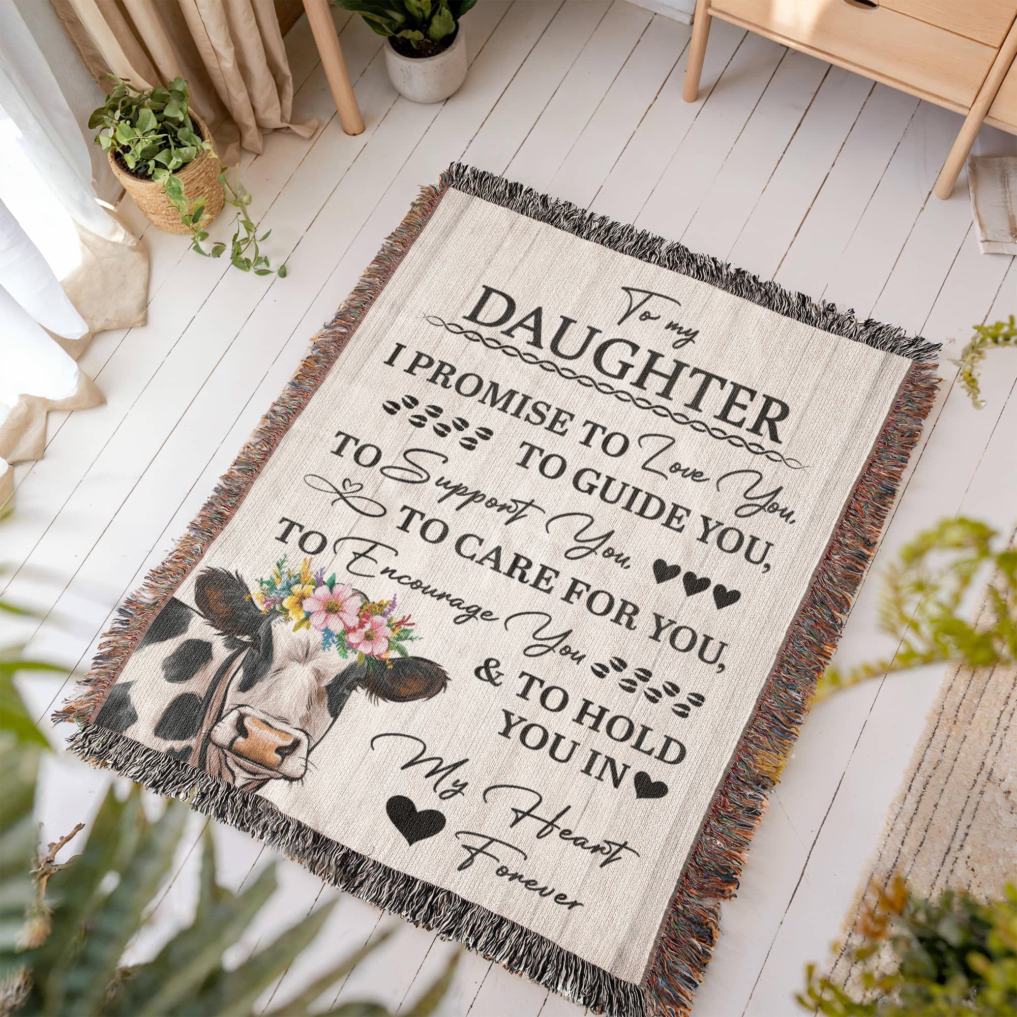 To My Daughter – “I Promise to Love, Guide, and Hold You Forever” Cow Blanket