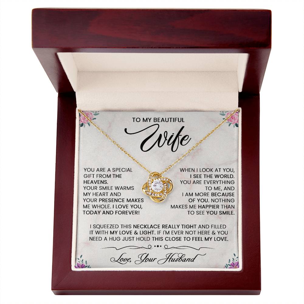 Imagine her reaction receiving this beautiful Love Knot Necklace. Representing an unbreakable bond between two souls, this piece features a beautiful pendant embellished with premium cubic zirconia crystals. Surprise your loved one with this gorgeous gift today!