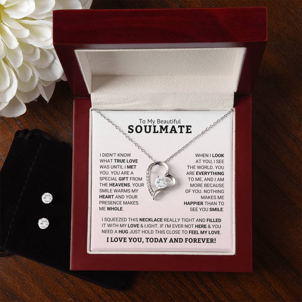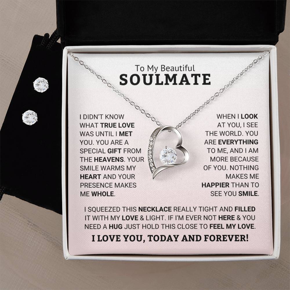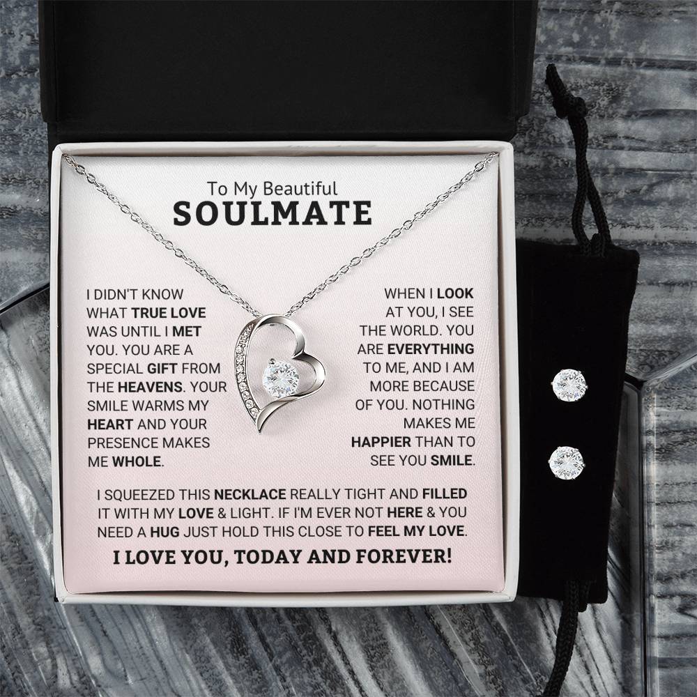 Give your loved one a gift that will make their heart swell! The Forever Love Necklace and Cubic Zirconia Earring Set is sure to do the trick.  This necklace and earring pairing provides dazzling sparkle when worn together or separately, and is perfect for any occasion! Do not miss out on this special offering!