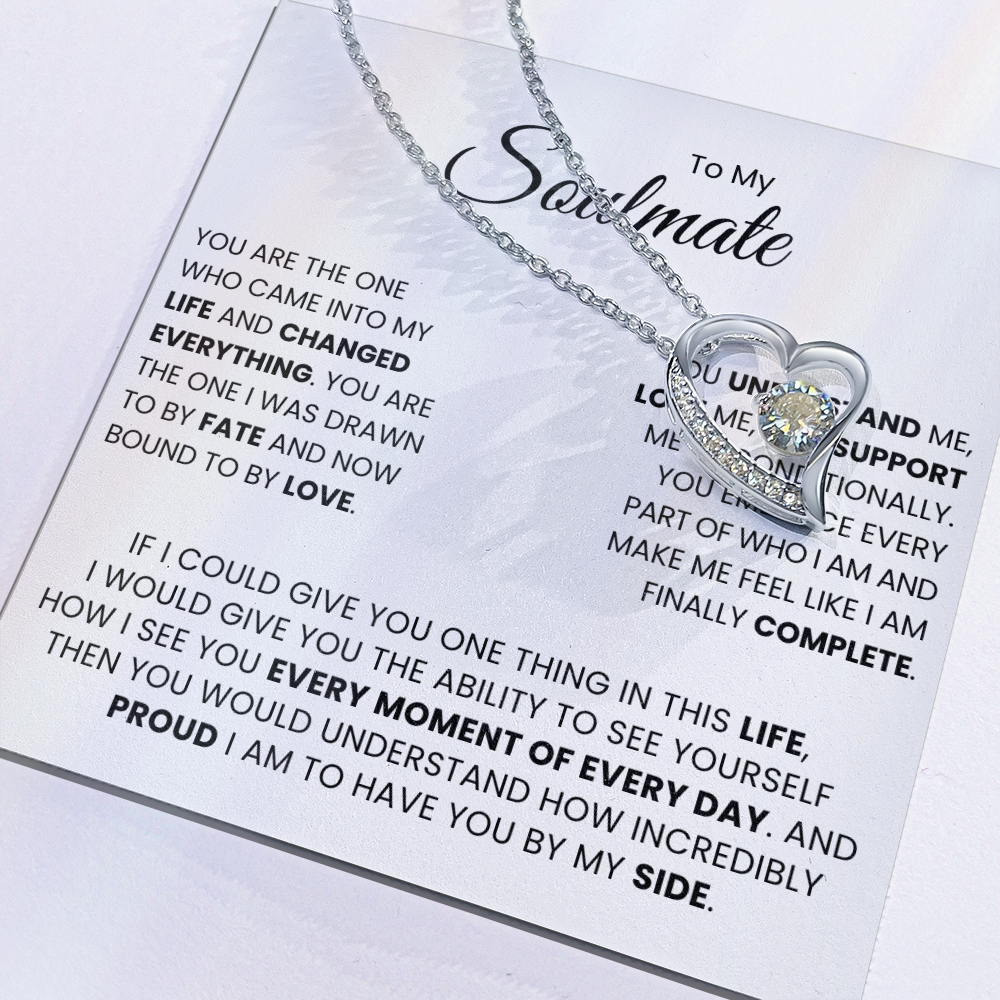 The dazzling Forever Love Necklace is sure to make her heart melt! This necklace features a stunning 6.5mm CZ crystal surrounded by a polished heart pendant embellished with smaller crystals to add extra sparkle and shine. Beautifully crafted with either a white gold or yellow gold finish, be sure to give her a classic gift she can enjoy everyday.