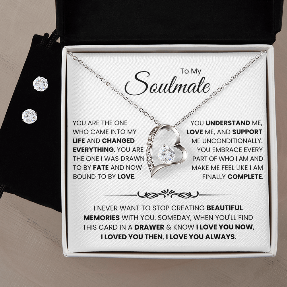 Give your loved one a gift that will make their heart swell! The Forever Love Necklace and Cubic Zirconia Earring Set is sure to do the trick.  This necklace and earring pairing provides dazzling sparkle when worn together or separately, and is perfect for any occasion! Do not miss out on this special offering!