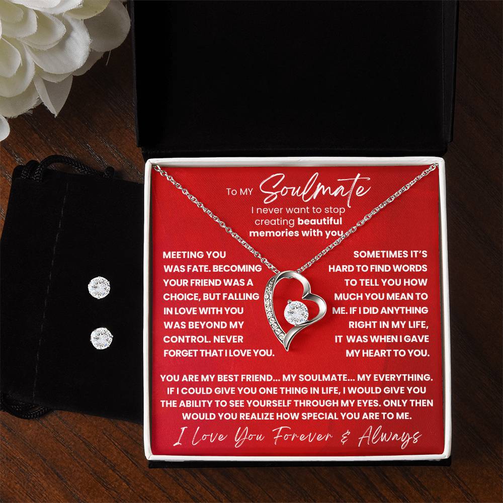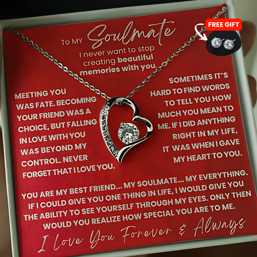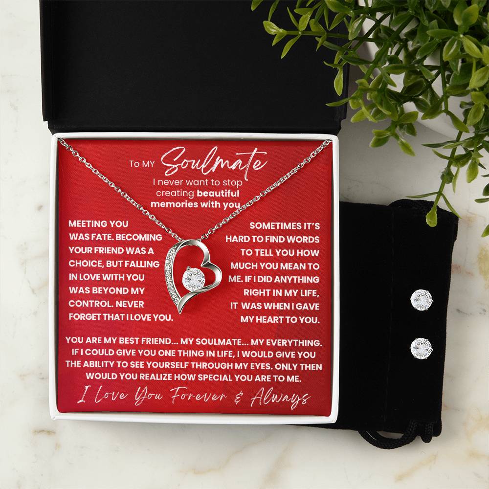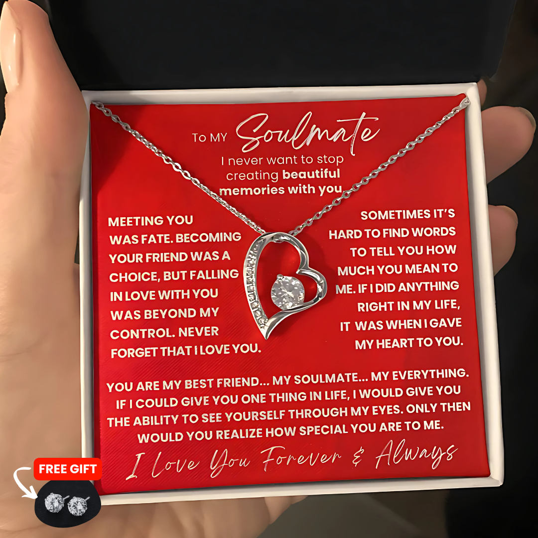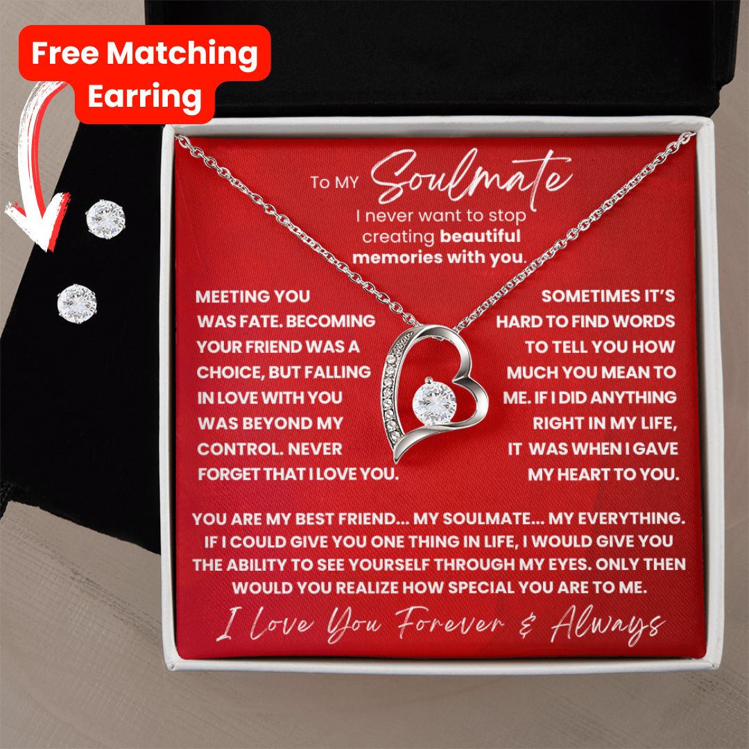 TO MY SOULMATE - YOU ARE MY BEST FRIEND... MY SOULMATE... MY EVERYTHING - (FOREVER LOVE NECKLACE + FREE MATCHING EARRINGS SET)