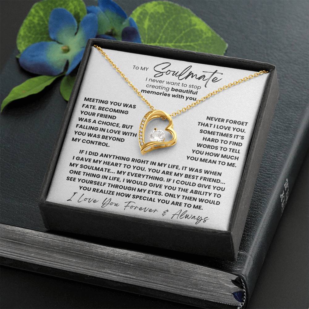 The dazzling Forever Love Necklace is sure to make her heart melt! This necklace features a stunning 6.5mm CZ crystal surrounded by a polished heart pendant embellished with smaller crystals to add extra sparkle and shine. Beautifully crafted with either a white gold or yellow gold finish, be sure to give her a classic gift she can enjoy everyday.