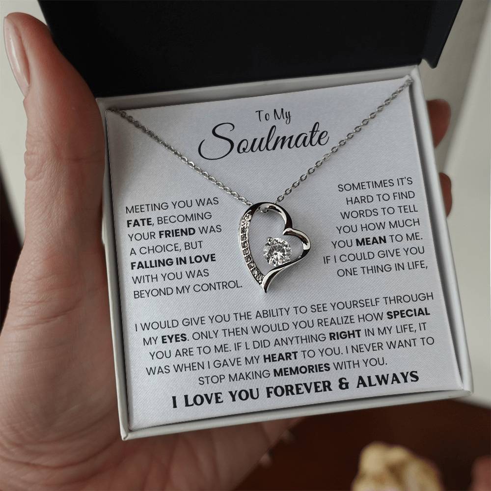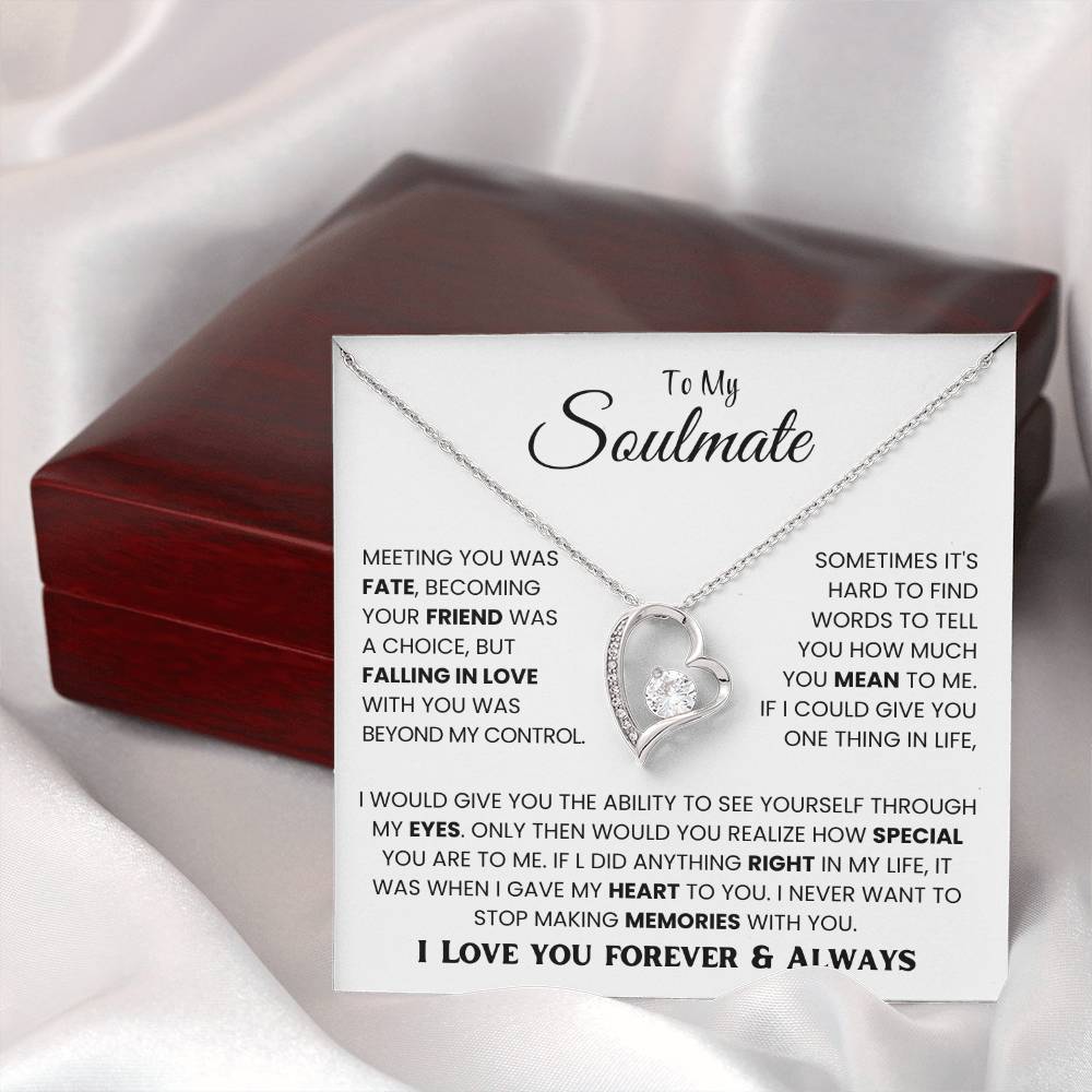 The dazzling Forever Love Necklace is sure to make her heart melt! This necklace features a stunning 6.5mm CZ crystal surrounded by a polished heart pendant embellished with smaller crystals to add extra sparkle and shine. Beautifully crafted with either a white gold or yellow gold finish, be sure to give her a classic gift she can enjoy everyday.