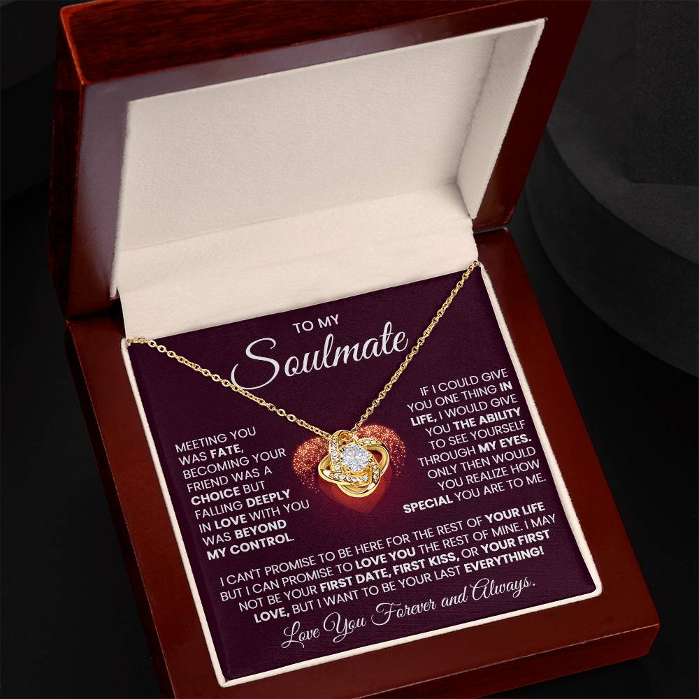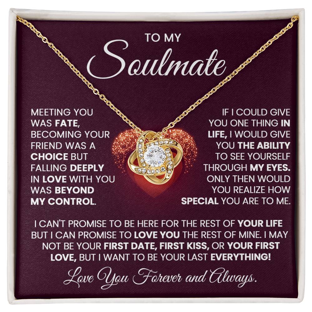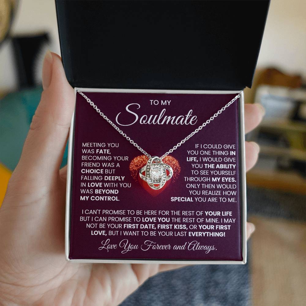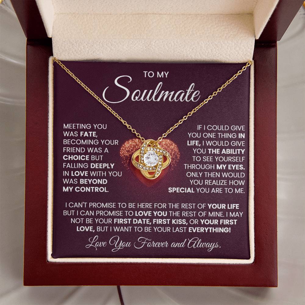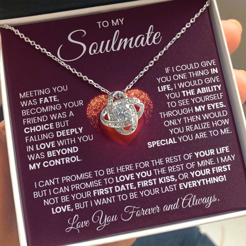 To My Soulmate, you are BRAVER than you believe, STRONGER than you seem, SMARTER than you think, and loved more than you know. If I could give you one thing in life, I would give you the ability to see yourself through my eyes. Only then would you realize how special you are to me. I can't promise to be here for the rest of your life but I can promise to love you the rest of mine. I may not be your first date, first kiss, or your first love, but I want to be your last everything! Love you forever and always
