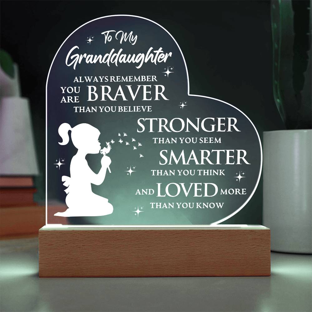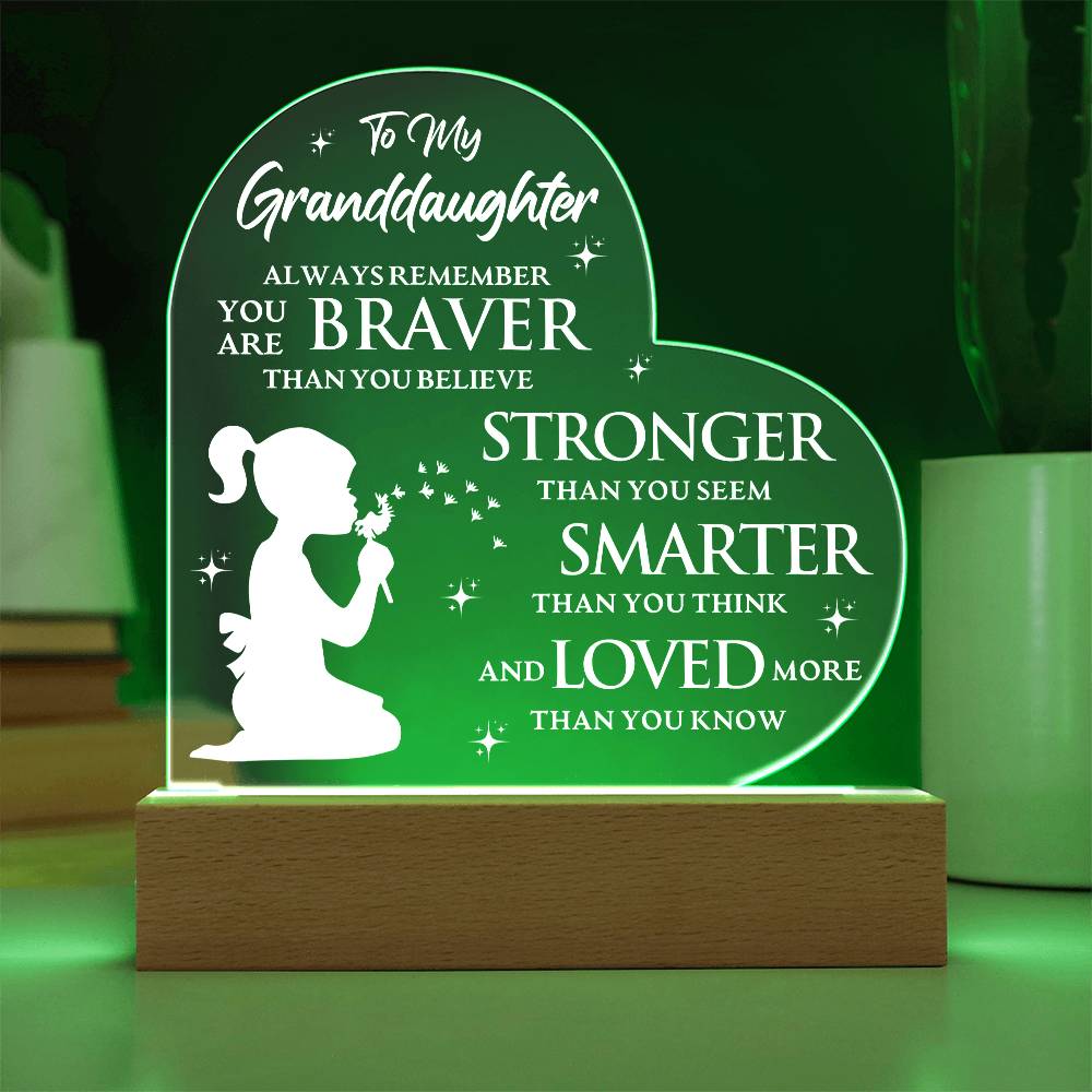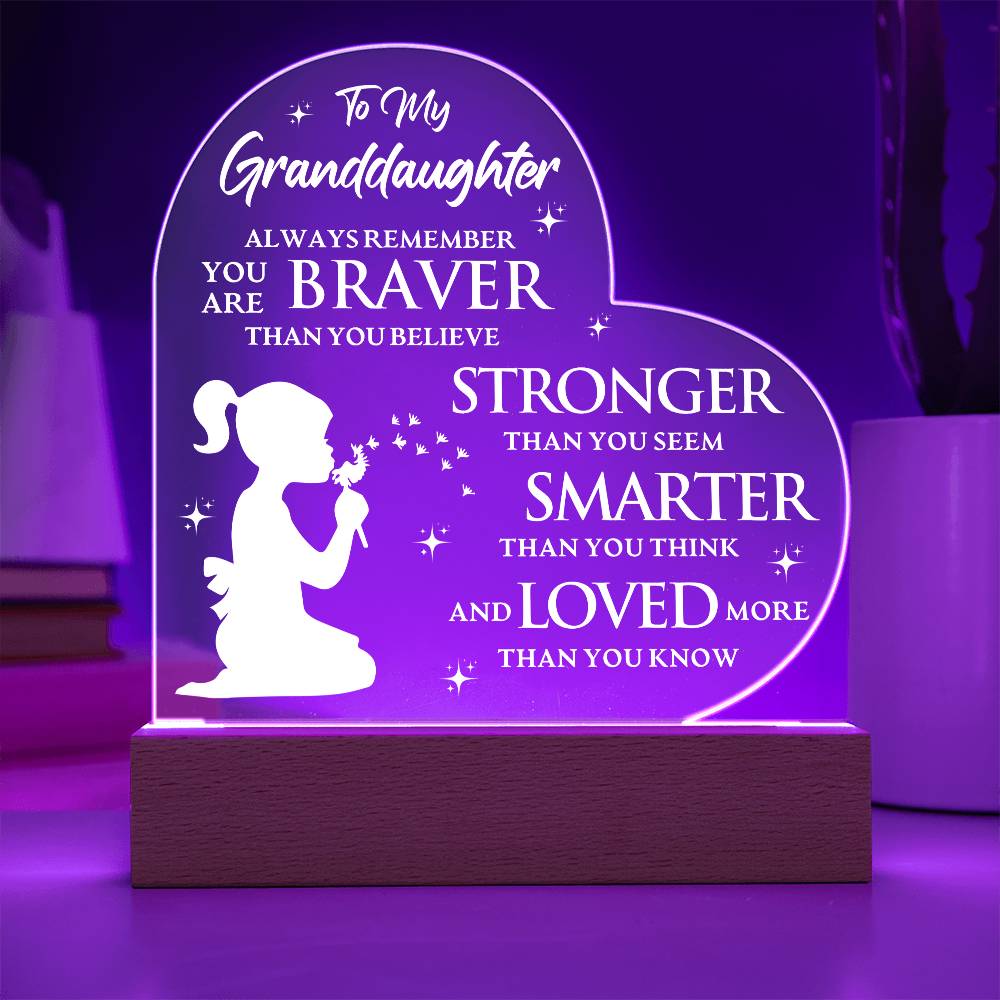 Your plaque will be crafted from premium acrylic with a professionally printed design for a polished look. It comes with a stylish wooden LED base, and you can choose between a USB plug-in option OR a cordless battery-operated option (requires 2 AAA batteries, not included). Both LED bases feature 7 vibrant colors, allowing the user to customize the lighting with various color changes and dynamic cycles.