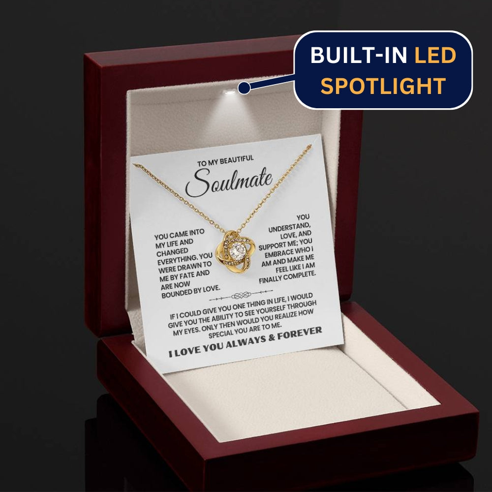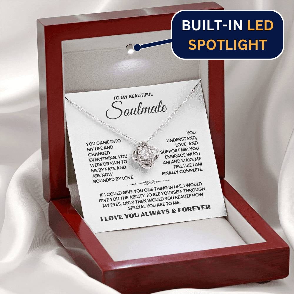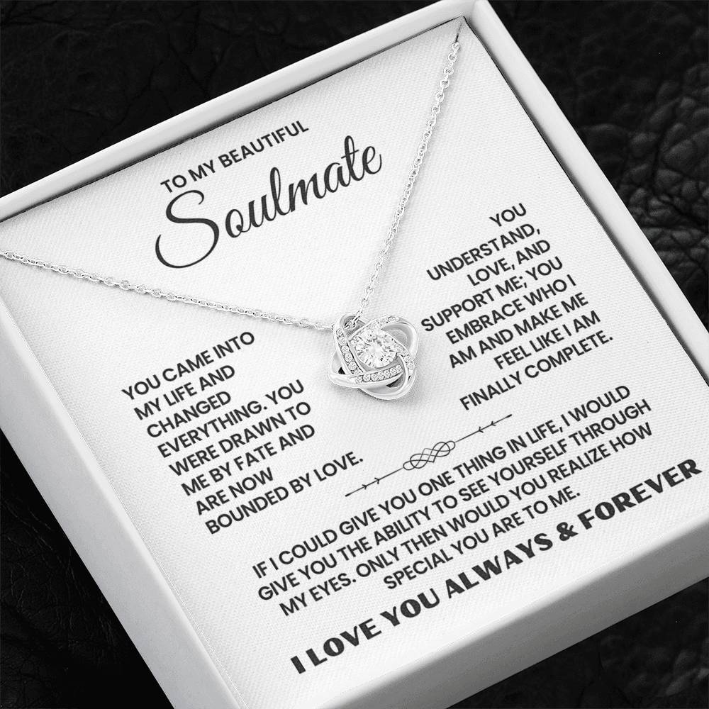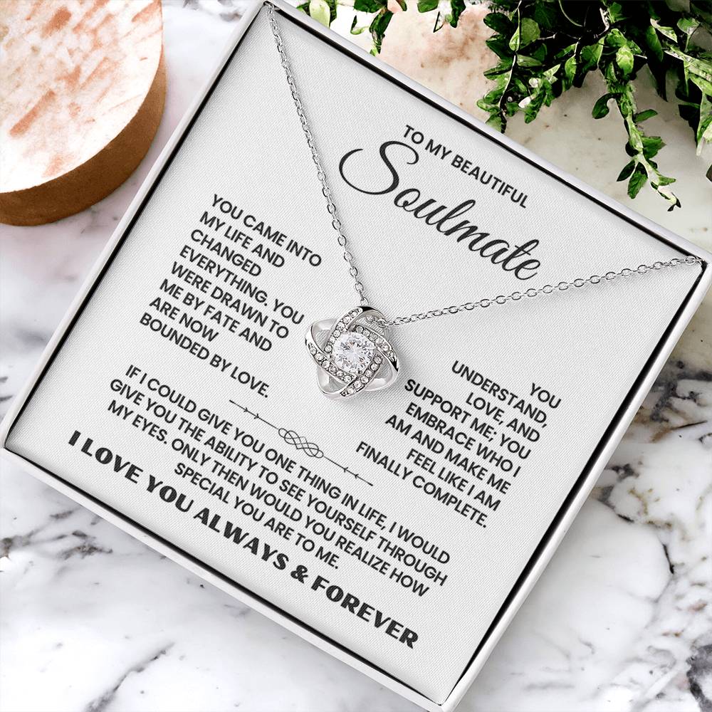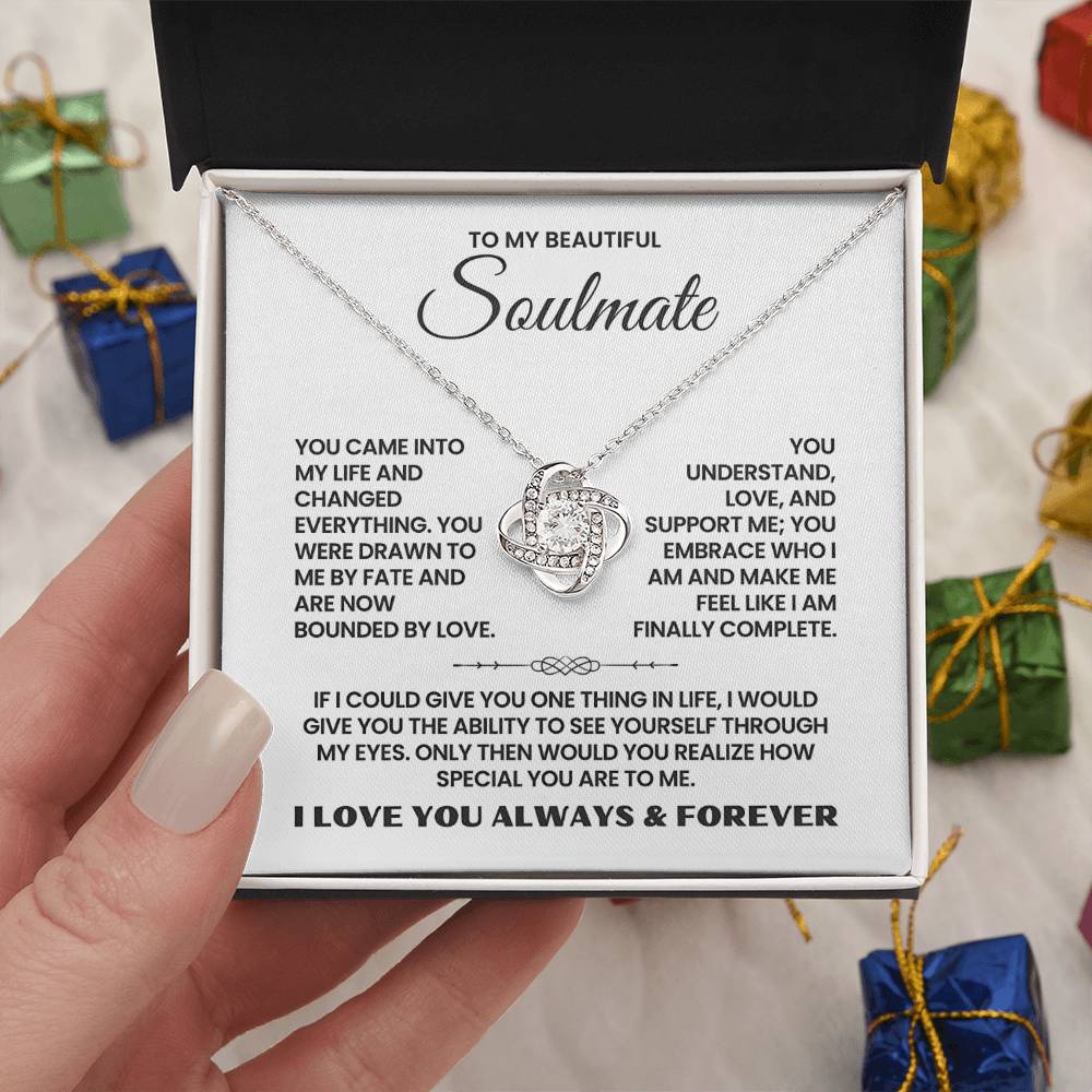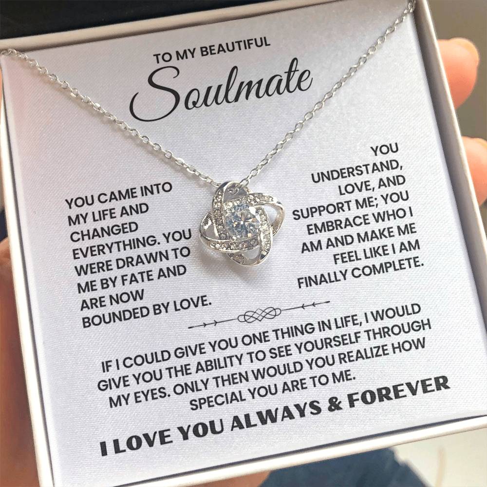 TO MY BEAUTIFUL SOULMATE, YOU CAME INTO MY LIFE AND CHANGED EVERYTHING. YOU WERE DRAWN TO ME BY FATE AND ARE NOW BOUNDED BY LOVE. YOU UNDERSTAND, LOVE, AND SUPPORT ME; YOU EMBRACE WHO I AM AND MAKE ME FEEL LIKE I AM FINALLY COMPLETE. IF I COULD GIVE YOU ONE THING IN LIFE, I WOULD GIVE YOU THE ABILITY TO SEE YOURSELF THROUGH MY EYES. ONLY THEN WOULD YOU REALIZE HOW SPECIAL YOU ARE TO ME. I LOVE YOU ALWAYS & FOREVER