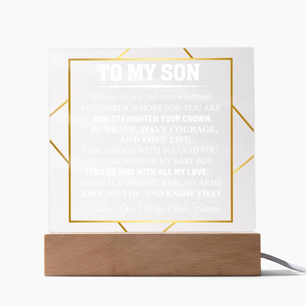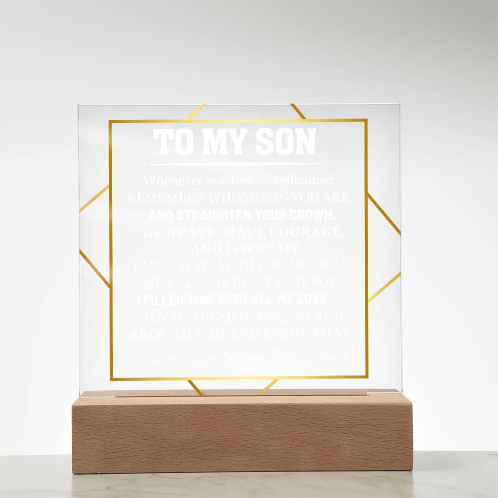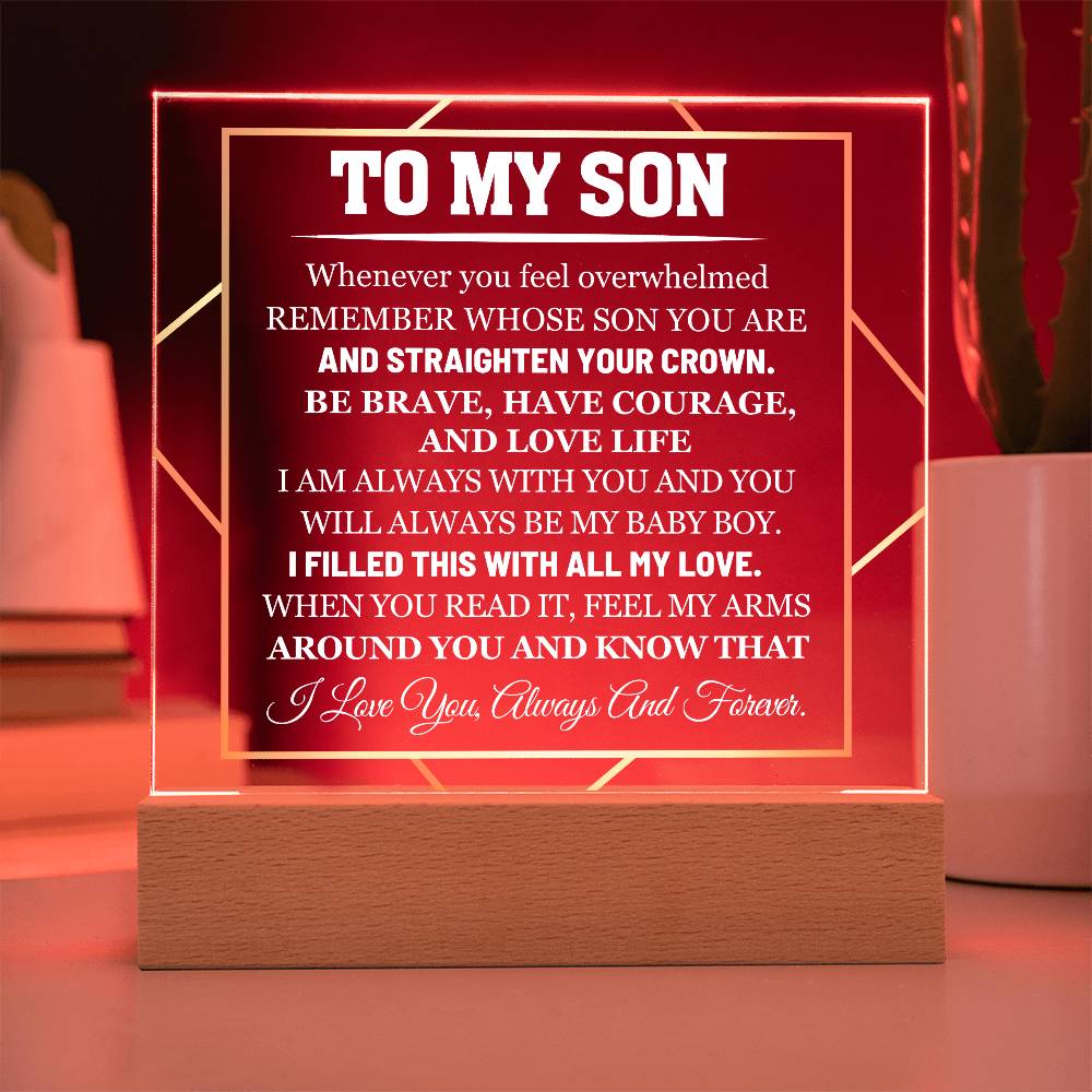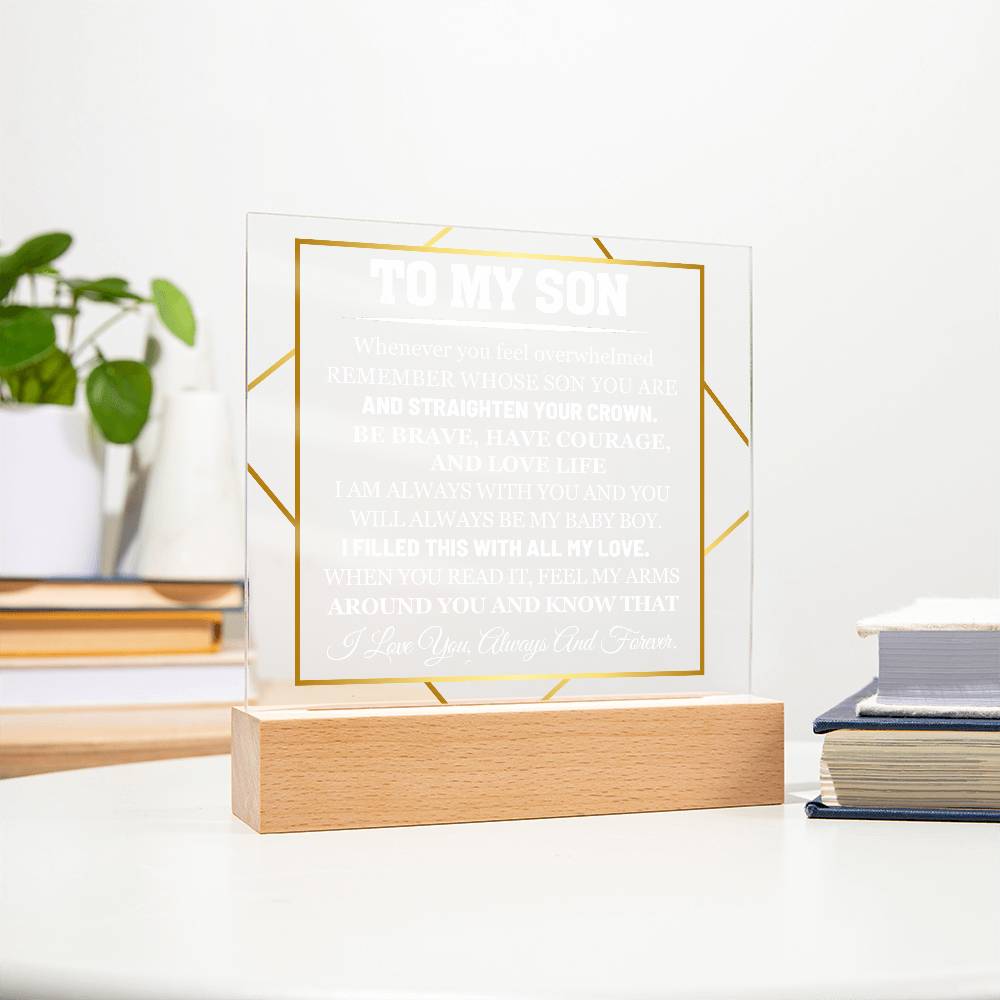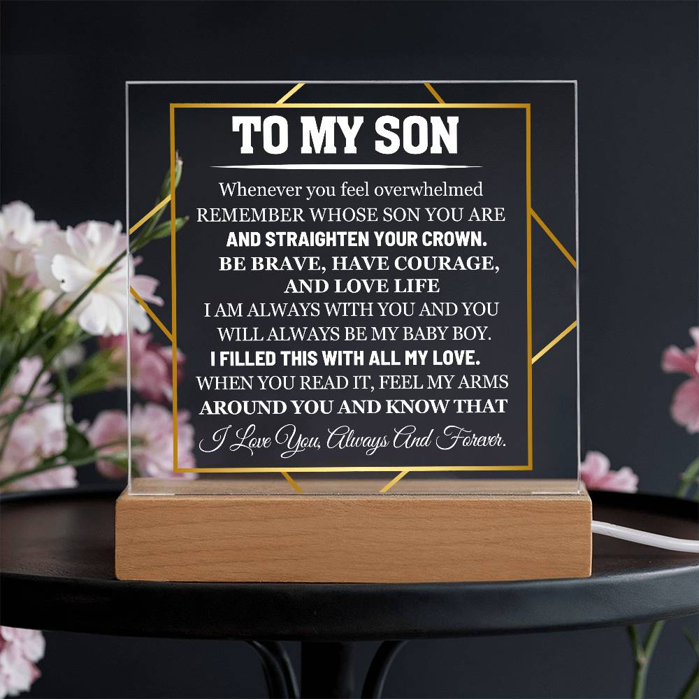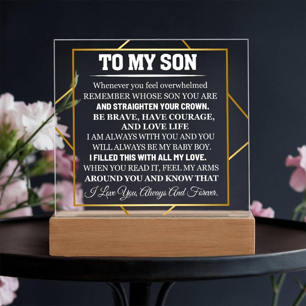 Your plaque will be crafted from premium acrylic with a professionally printed design for a polished look. It comes with a stylish wooden LED base, and you can choose between a USB plug-in option OR a cordless battery-operated option (requires 2 AAA batteries, not included). Both LED bases feature 7 vibrant colors, allowing the user to customize the lighting with various color changes and dynamic cycles.